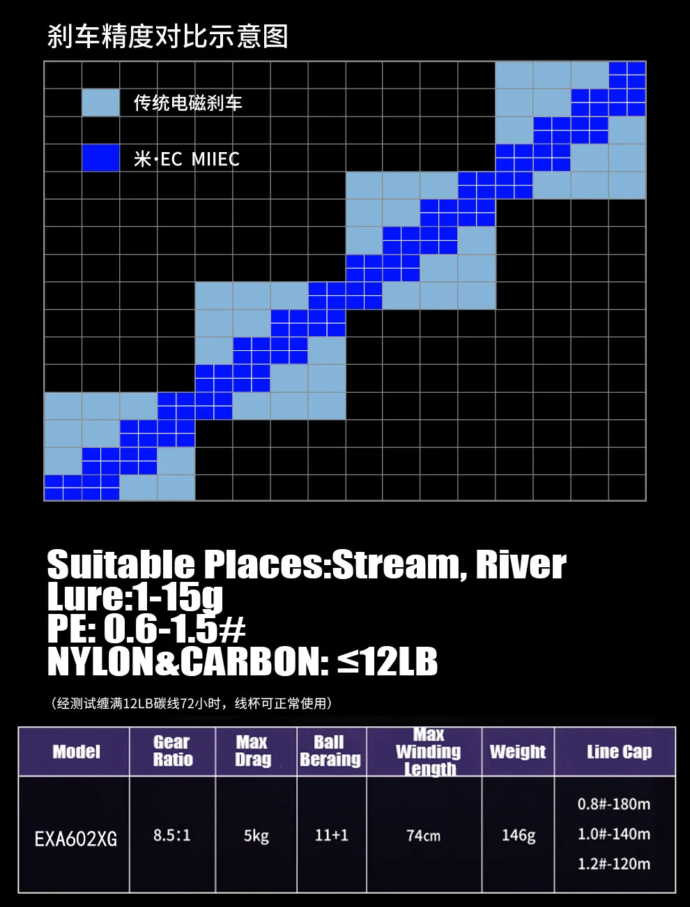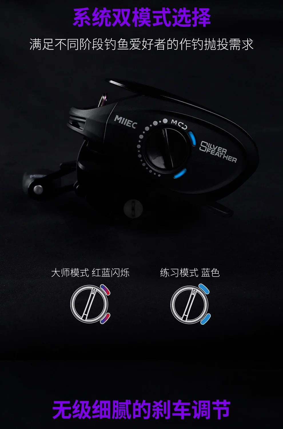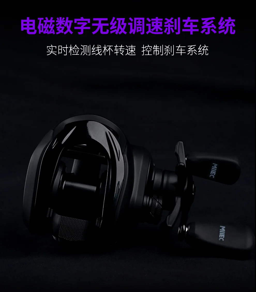 MIIEC (Mi·EC)·China Core·¡Reduce los carretes de pesca inteligentes!El carrete de pesca Enjoy Edition de la serie EXA es un carrete de pesca que adopta un nuevo sistema de frenado de regulación de velocidad continua digital electromagnético.Tiene control de freno digital, control de velocidad de freno continuo, selección de modo dual de maestro y práctica, con sonido y luz, y puede generar electricidad.
