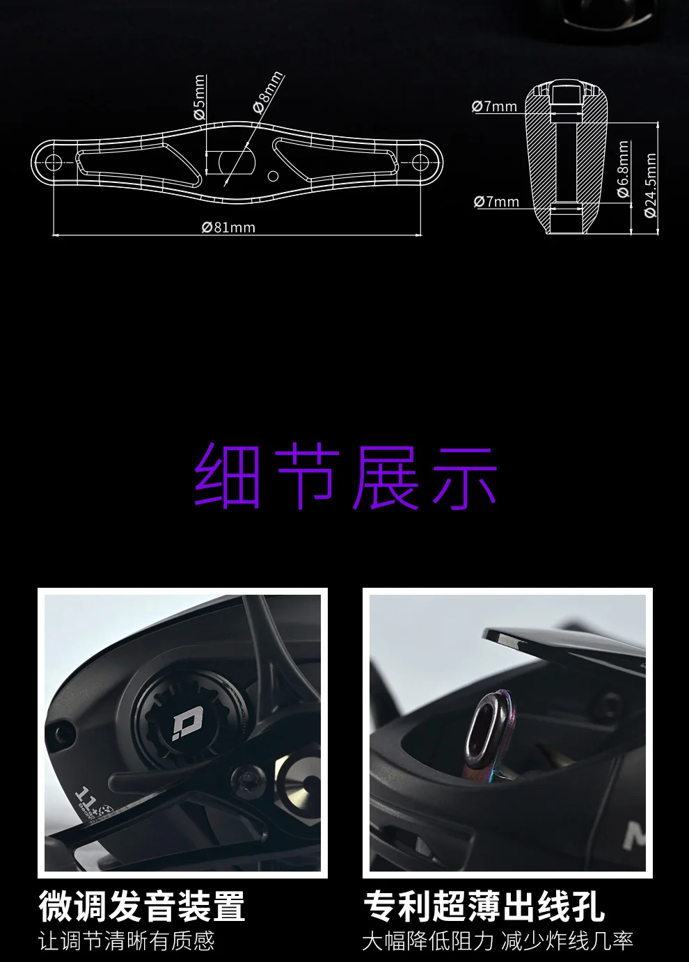 1.Medidor EXA·Ajuste del tamaño del freno CE: a través del tamaño del icono indicador en el costado del carrete de pesca, gire la perilla del freno para ajustar infinitamente la fuerza del freno para adaptarse a diferentes necesidades.El ajuste de freno infinito y delicado tiene una fuerte capacidad correspondiente.