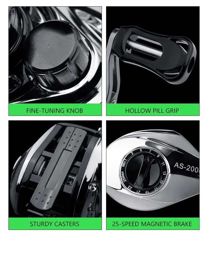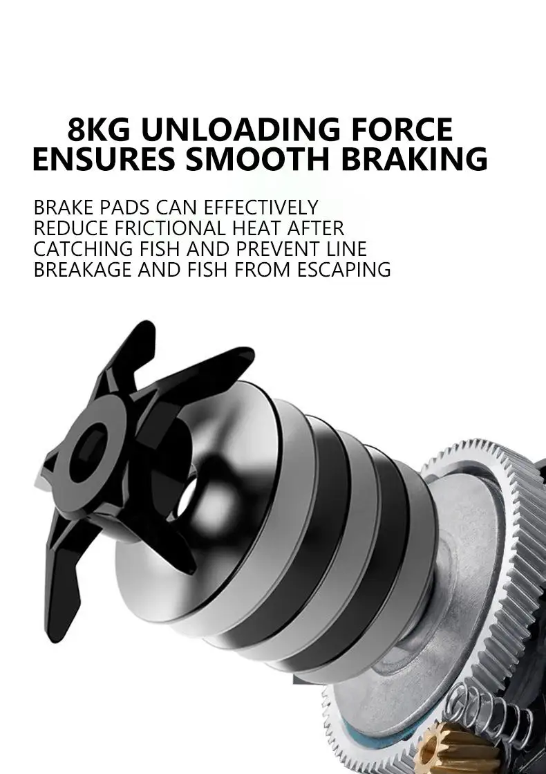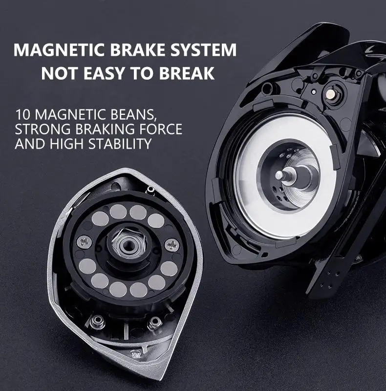 Sistema de freno magnético, garantiza un frenado suave, una fuerte fuerza de frenado, evita la rotura de la línea y evita que los peces se escapen;