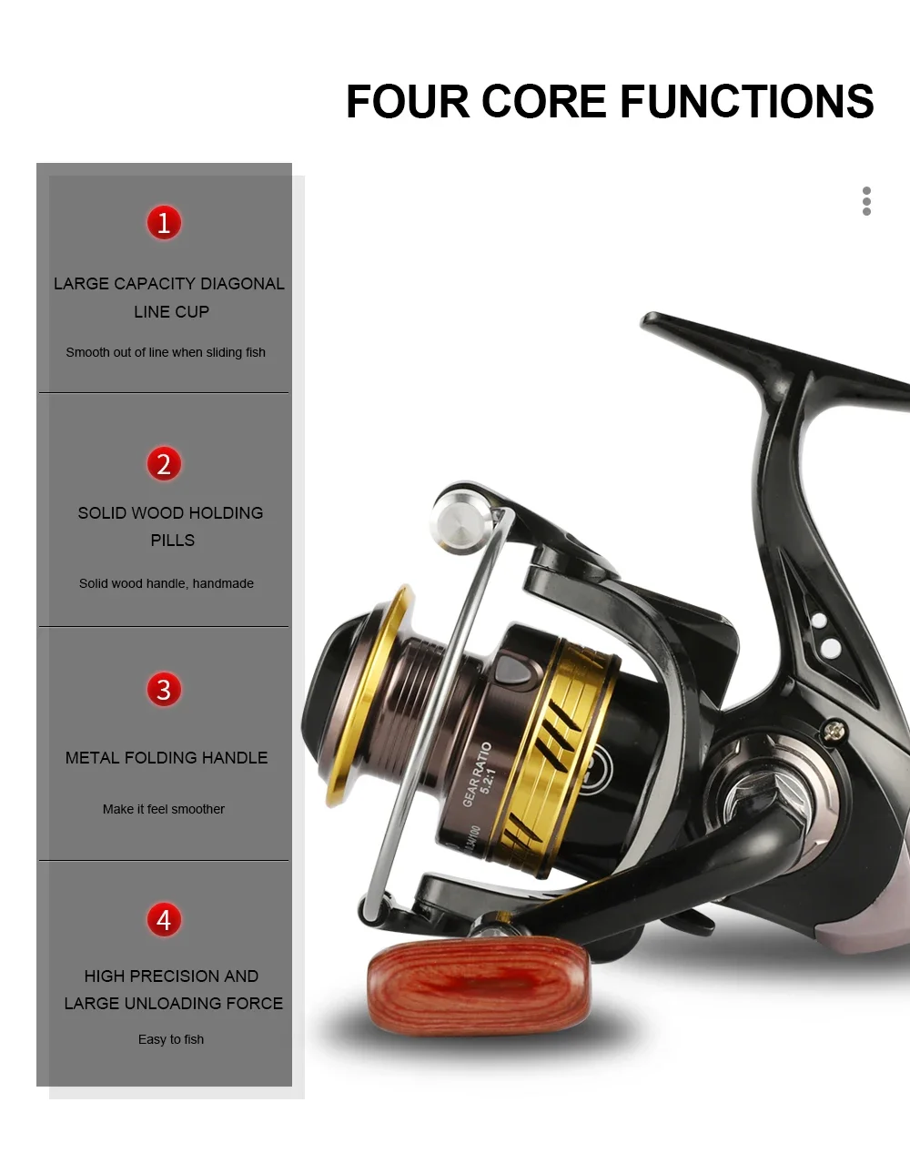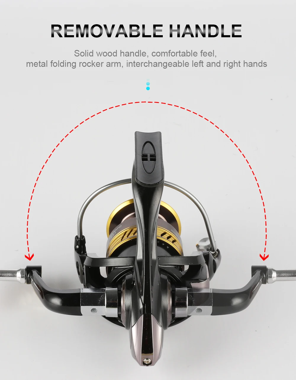 Carrete giratorio 2026, carretes de pesca giratorios de arrastre máximo de 22LB, carrete de pesca para agua dulce, relación de engranaje 5,2: 1 con mecedores de Metal plegables