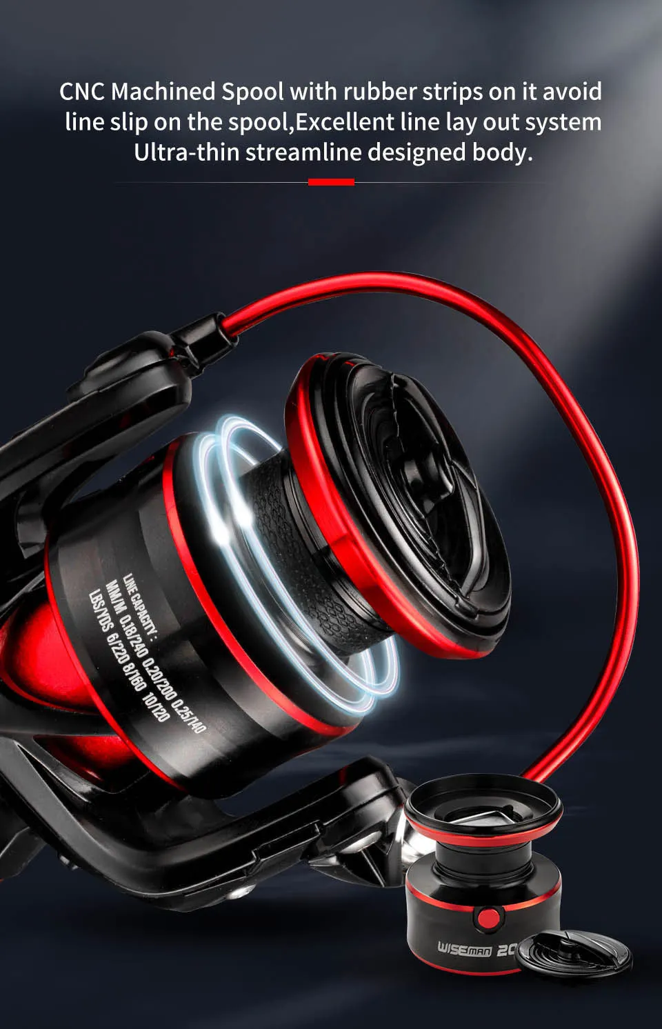 Capacidad de línea (YD/lb):6/340 8/220 10/150, 6/420 8/270 10/185