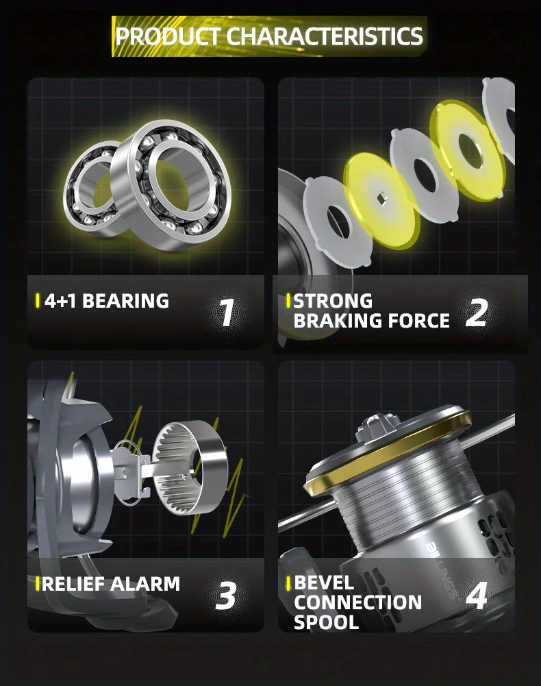 Carrete giratorio de aluminio para pesca en agua dulce y salada, accesorio de arrastre máximo de 2000 kg/18lb, relación de engranaje 7000: 1, serie GLS 5,0-8,16