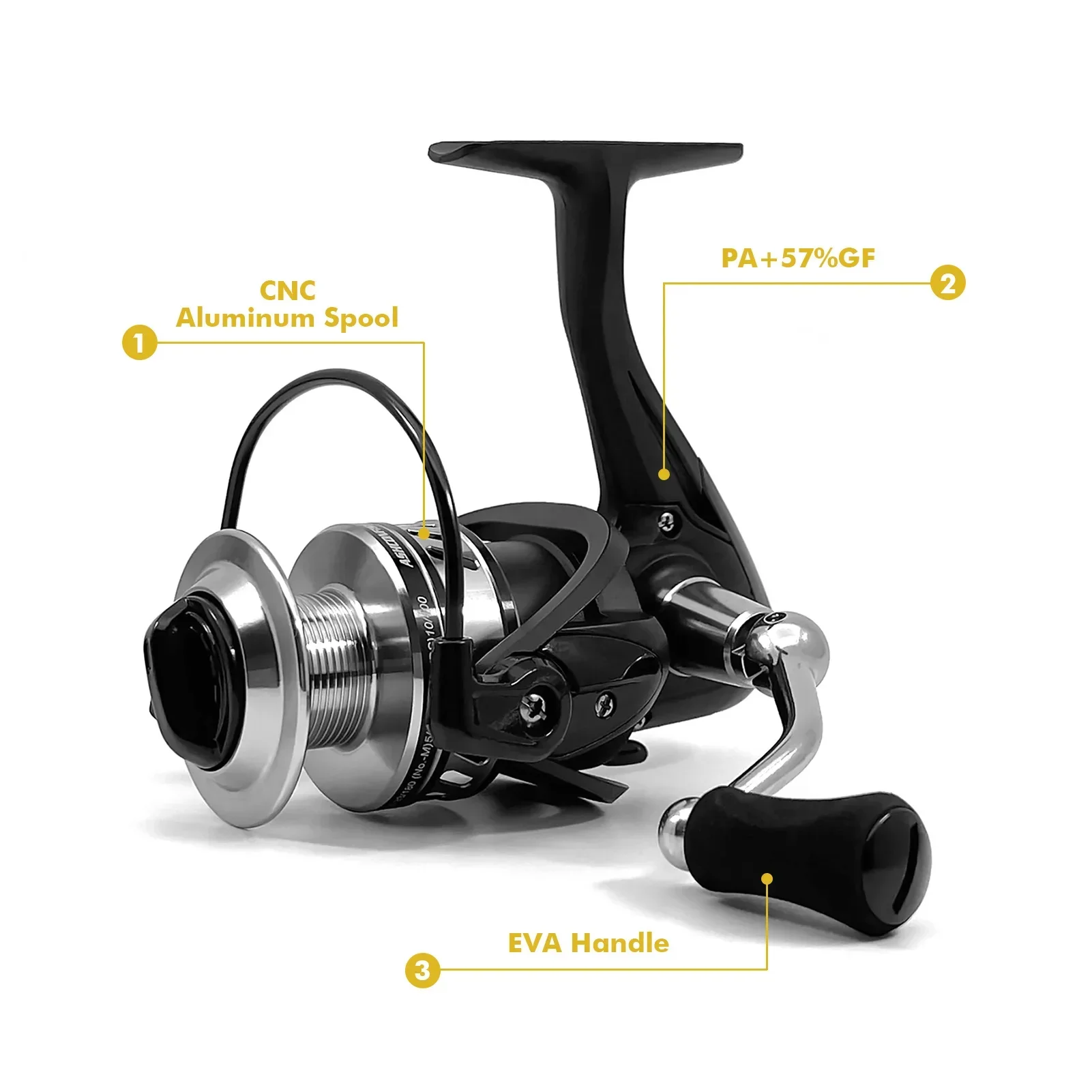Capacidad de línea: BF2000-No.2/150M o 4LB/330YDS o 0,165mm/300M BF3000-No.3/150M o 6LB/330YDS o 0,235mm/200M BF4000-No.4/150M o 8LB/400YDS o 0,285mm/200M BF5000-No.5/150M o 10LB/330YDS o 0,33mm/180M