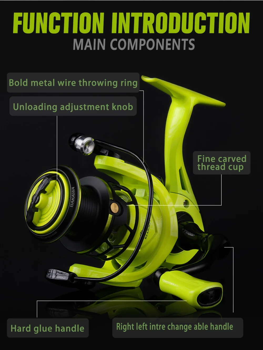 Carrete giratorio BAKAWA, carretes de pesca, 1000 2000, 3000 Series 5,2:1, accesorios para artículos de pesca, pesca de carpa, boro de agua dulce