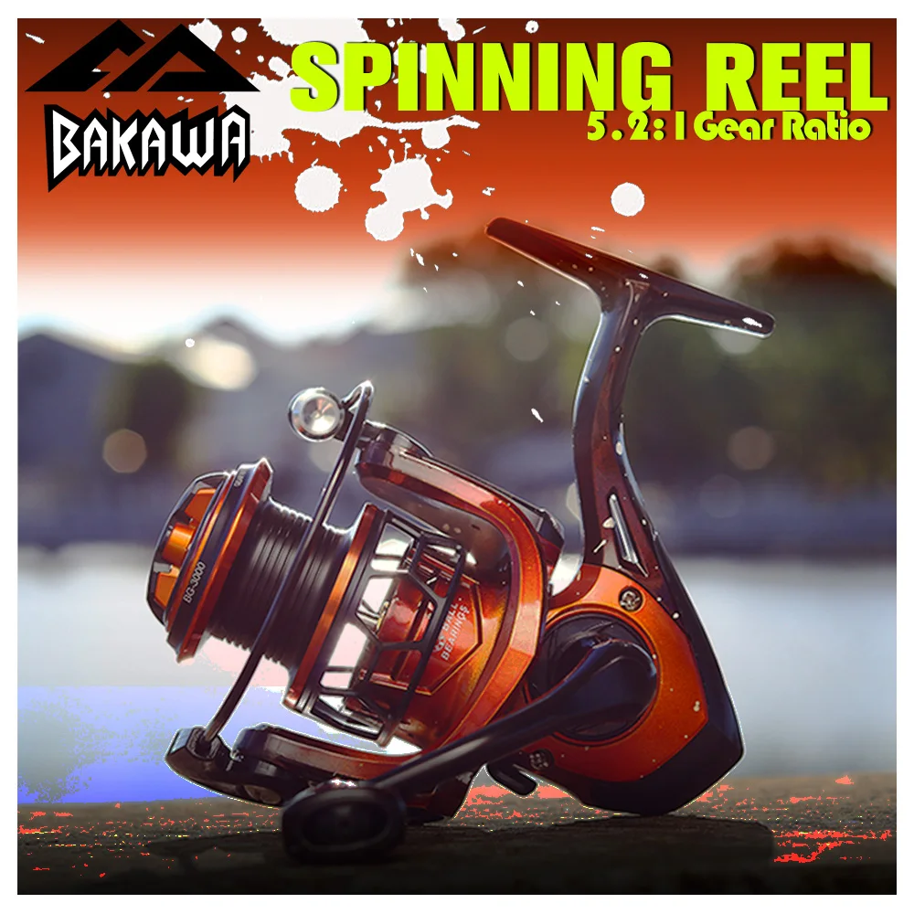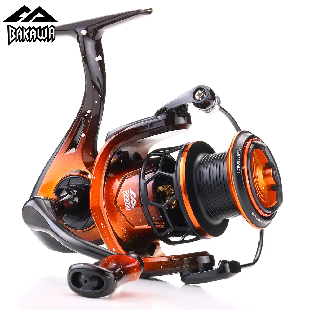 Carrete giratorio BAKAWA, carretes de pesca, serie 1000 2000 3000, línea de Metal 5,2:1, carrete de pesca, equipo de pesca, accesorios de pesca