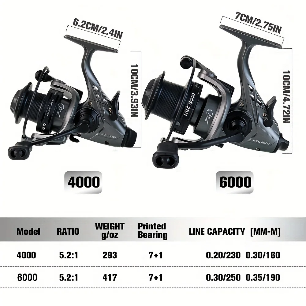 BAKAWA Carrete giratorio Rueda Pesca de carpa 5,2:1 para accesorios de pesca Carrete de pesca de agua dulce de agua de mar Equipo de productos de pesca