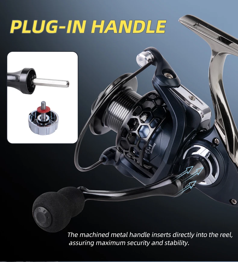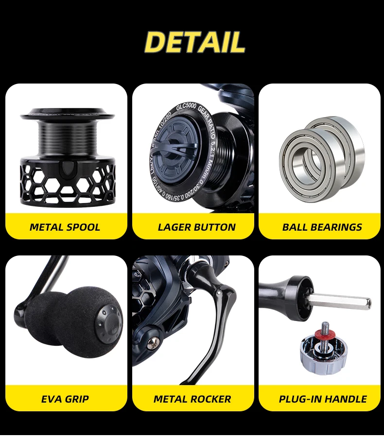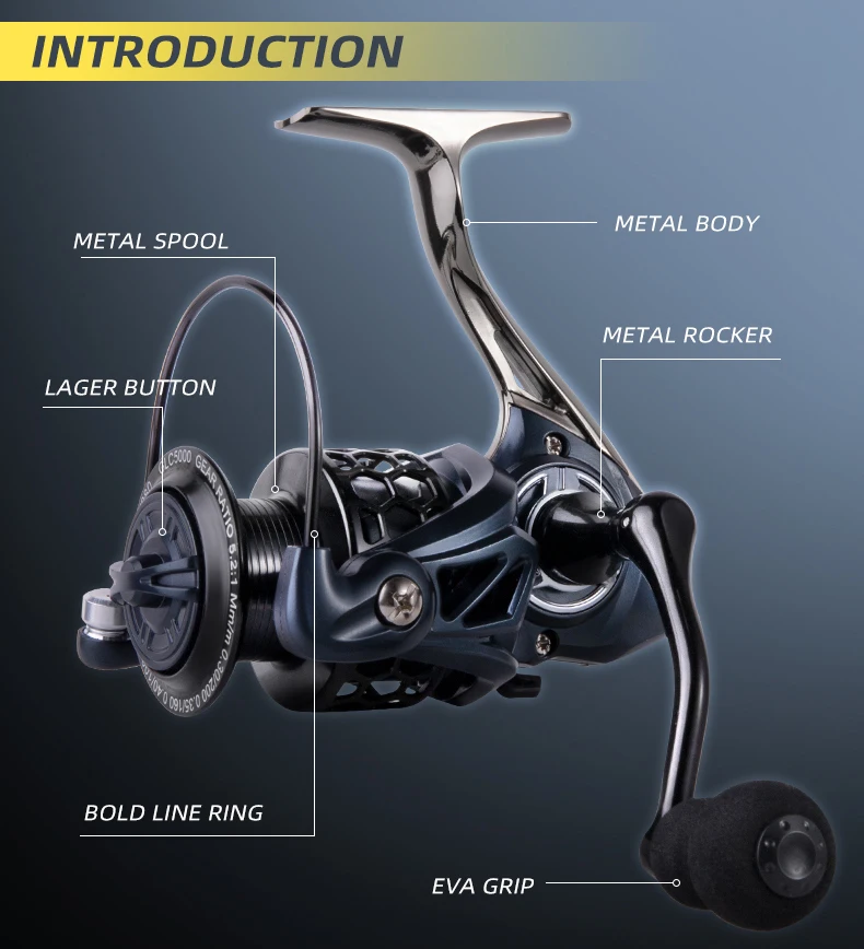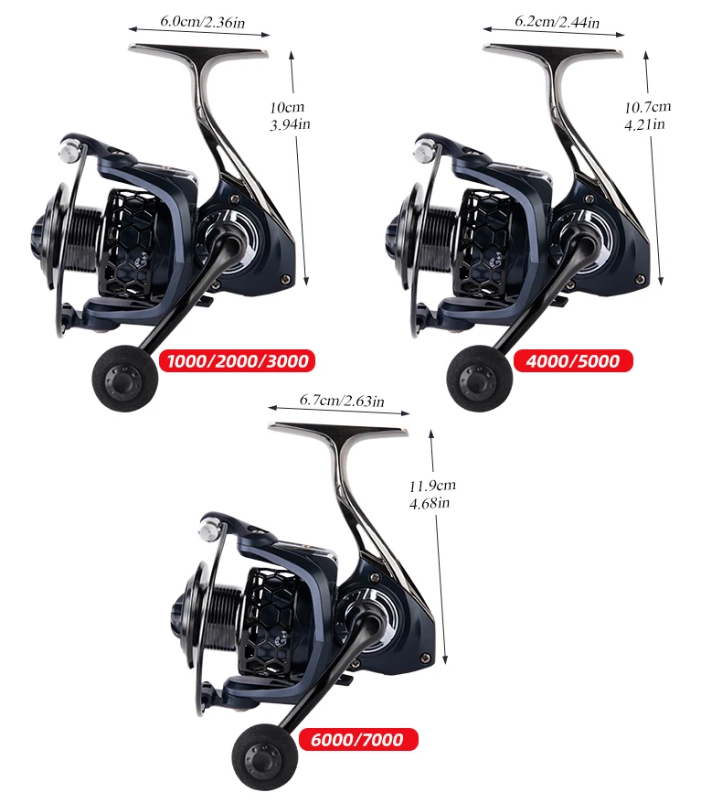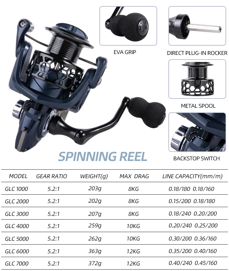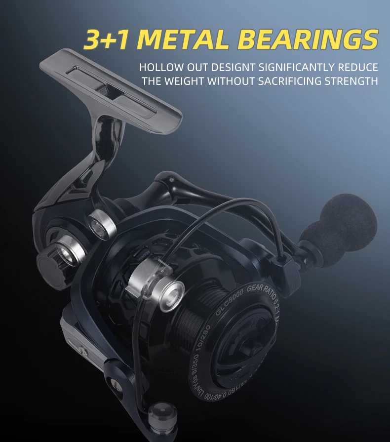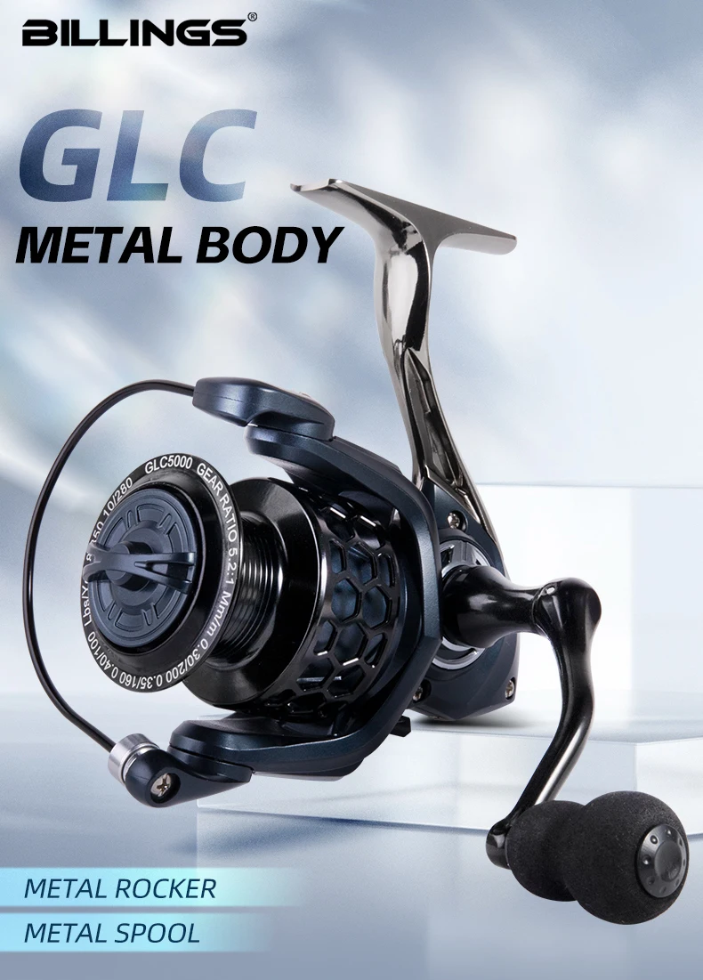 Carrete giratorio BILLINGS 1000-7000, carretes de pesca giratorios de Metal, carrete de pesca con potencia máxima de arrastre de 12KG 5,2: 1 para agua dulce y salada