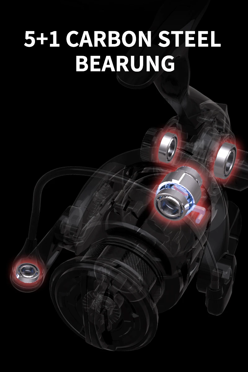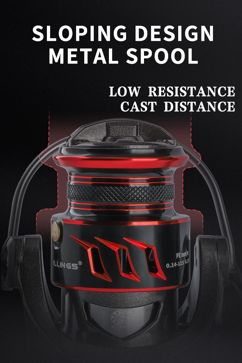 Carrete giratorio BILLINGS, arrastre máximo de 6KG para carrete de pesca de agua dulce y salada, relación de engranaje 5,1: 1, carrete de pesca de rodamiento suave