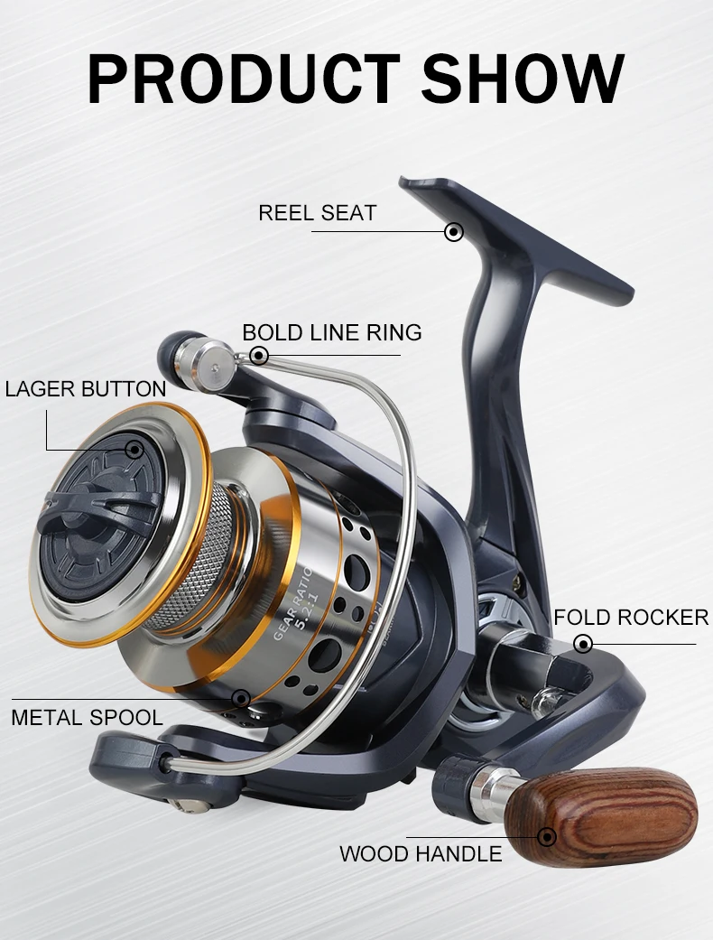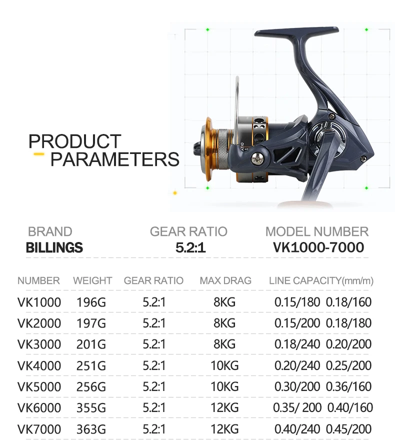 Carrete giratorio BILLINGS, carrete de pesca de agua dulce y salada, carrete de Metal de arrastre máximo de 12KG, relación de engranaje 5,2: 1, balancín plegable intercambiable