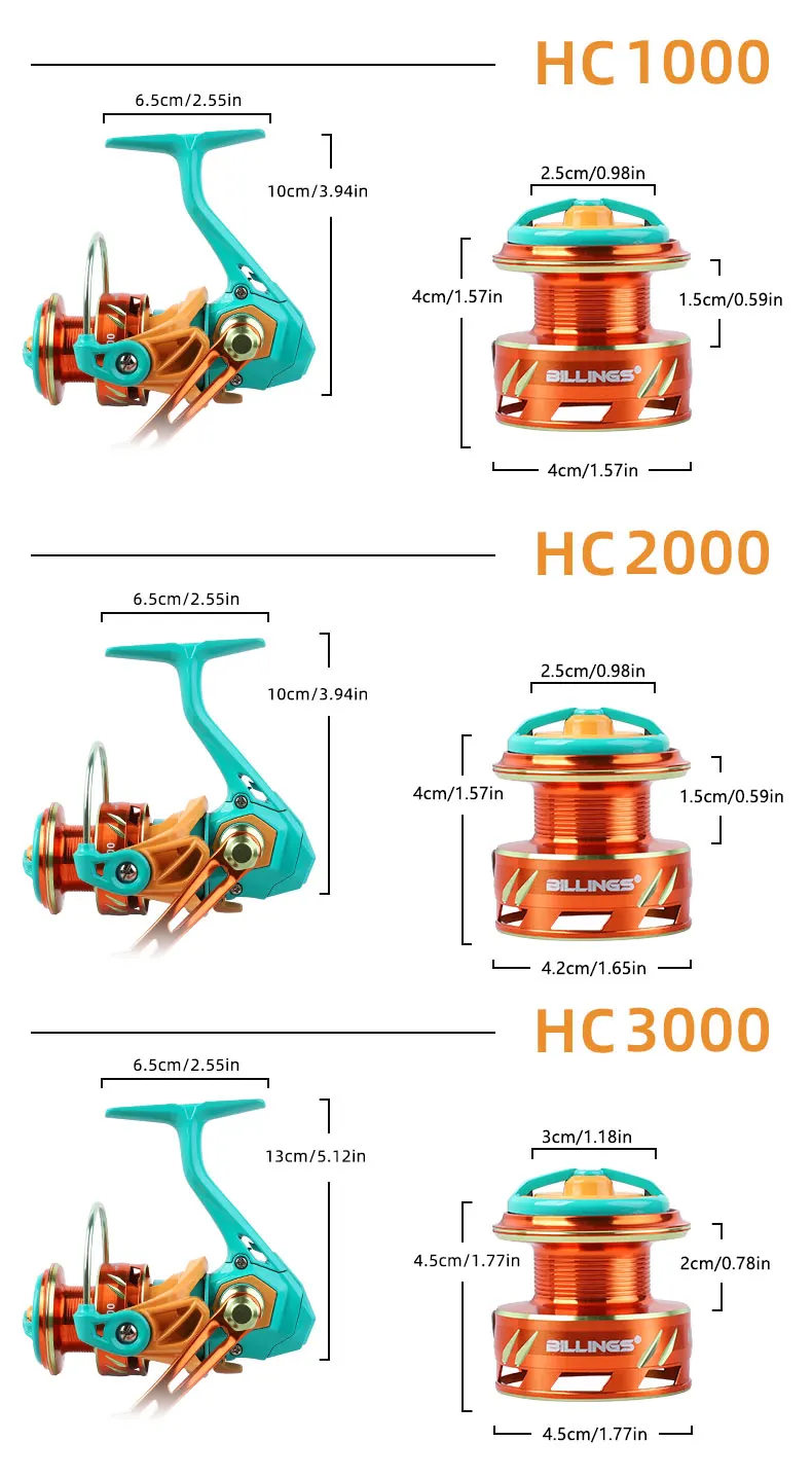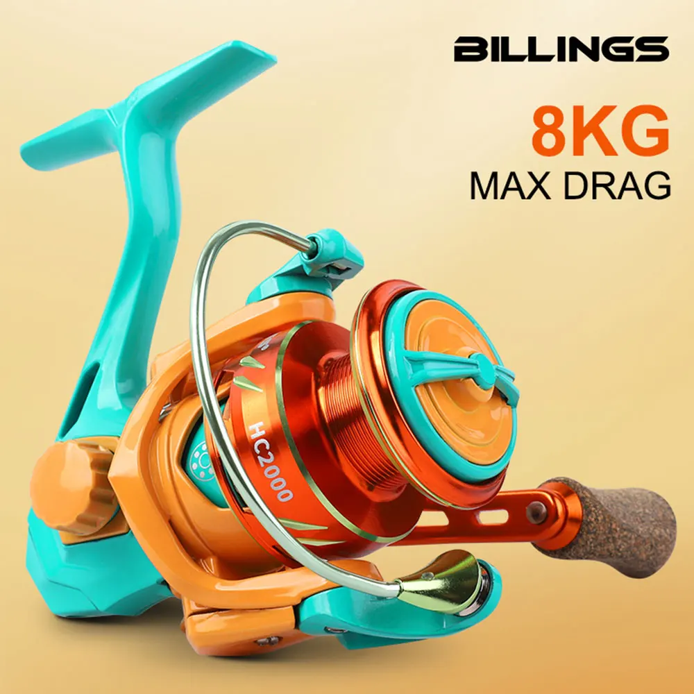 Carrete giratorio BILLINGS, carrete de pesca giratorio de agua dulce, ultrasuave, relación de engranaje 5,2: 1, arrastre máximo de 17,63 libras con carrete de aluminio