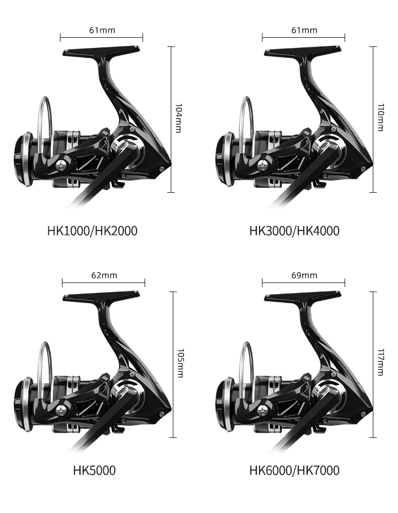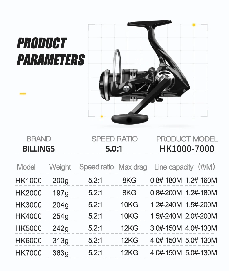 Carrete giratorio BILLINGS serie HK, carrete de pesca giratorio de agua dulce y salada, rodamiento ultra suave, arrastre máximo de 26 libras, relación de engranaje 5,2: 1