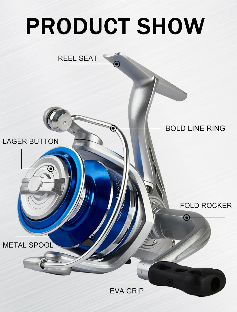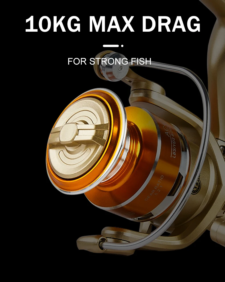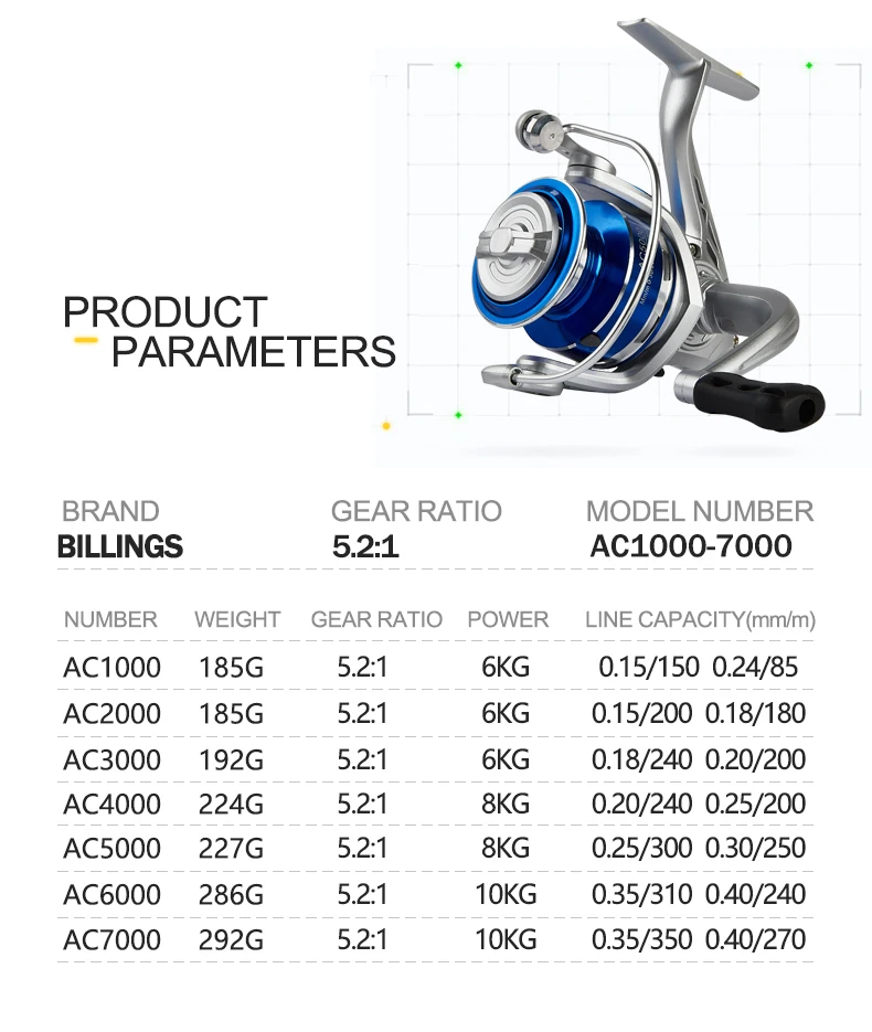 Carrete giratorio de CA BILLINGS, carrete de pesca de agua dulce de agua salada, arrastre máximo de 22 libras, relación de engranaje 5,2: 1, con carrete de Metal y balancín plegable