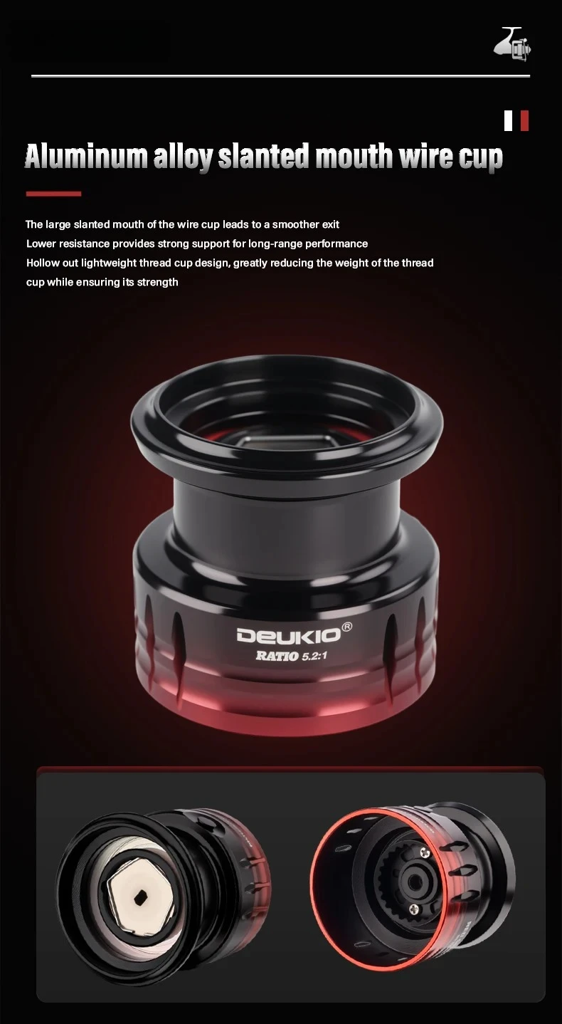 5.Copa de alambre de aleación de aluminio finamente tallada con gradiente de dos colores, la copa del medio es beneficiosa para la fundición de larga distancia Luya, el diseño liviano de la copa de alambre, la carcasa de alambre hueco y la columna de pasador de metal lo hacen más conveniente de almacenar;Ligero, buena sensación en la mano, pastillas de goma suave que sujetan, sacudidas que ahorran más trabajo, diseño ergonómico