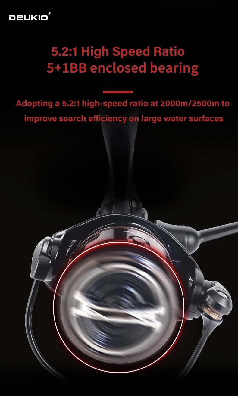 Carrete giratorio DEUKIO 145g ultraligero 5 + 1BB 5,2: 1 relación de engranaje carrete de tallado CNC 6kg/13lb carrete de pesca de arrastre máximo agua salada