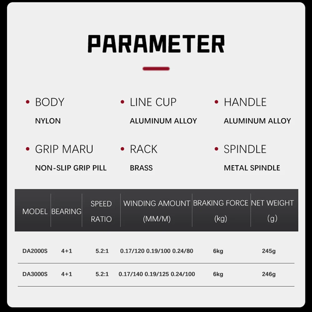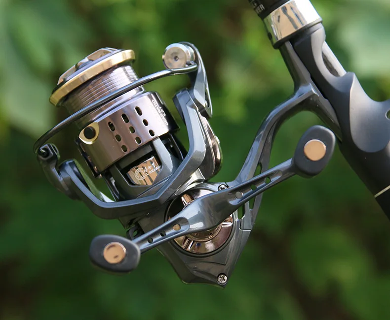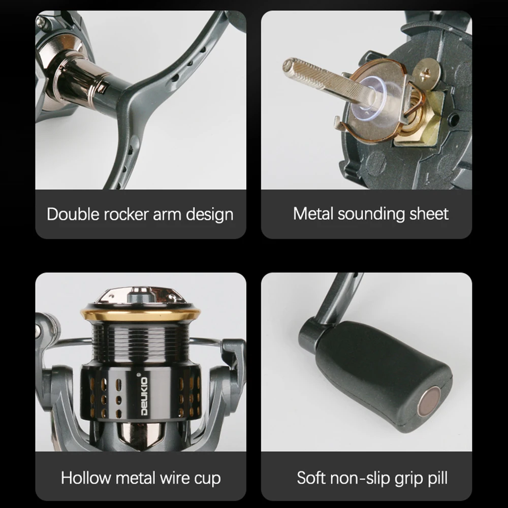 DEUKIO carrete giratorio de doble mango carrete de aleación de aluminio 4 + 1BB Max Drag 13LB carrete de pesca para pesca en el mar