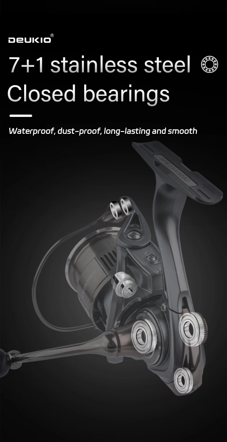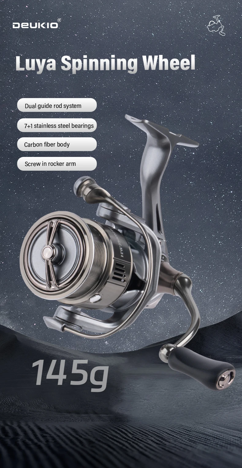 Carrete giratorio DEUKIO Luya, fibra de carbono antialgua de mar, cuerpo ultraligero sellado, resistente al agua, 7 + 1BB, carrete de pesca con rodamiento inoxidable