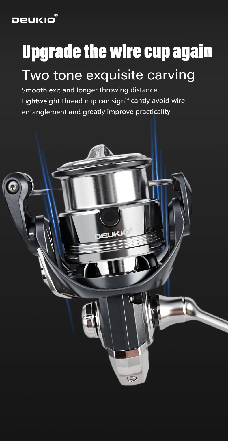 Carrete giratorio DEUKIO para pesca en el mar, ultraligero, solo 145g, tornillo CNC con mango 5,2: 1, potencia máxima de arrastre de 13,23 libras para agua dulce y salada