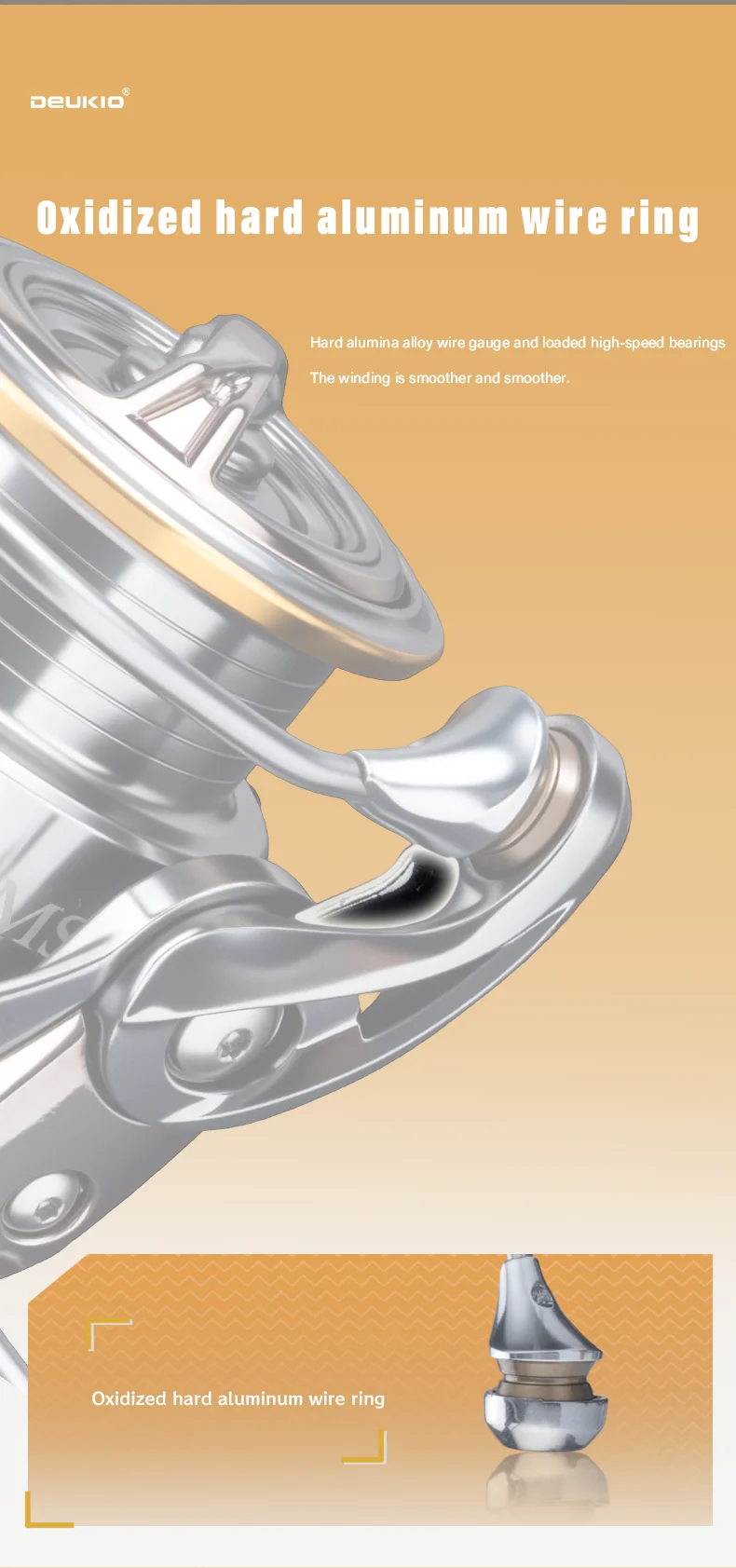 Carrete giratorio DEUKIO resistente al agua, relación de engranaje 5,2: 1, 6 + 1BB, mango CNC, potencia máxima de arrastre de 6KG, carrete de pesca para agua dulce y salada