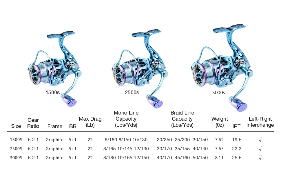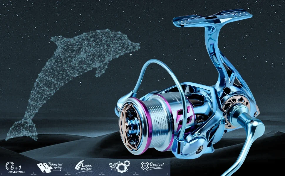 Carrete giratorio Dolphin 1500/2500/3000Advance Edition, relación de engranaje 5,2: 1, 22 libras, 5 + 1BB, sistema de arrastre sellado, agua salada, agua dulce