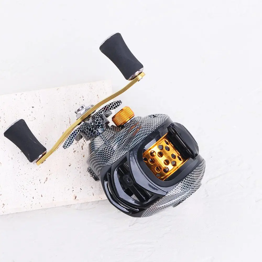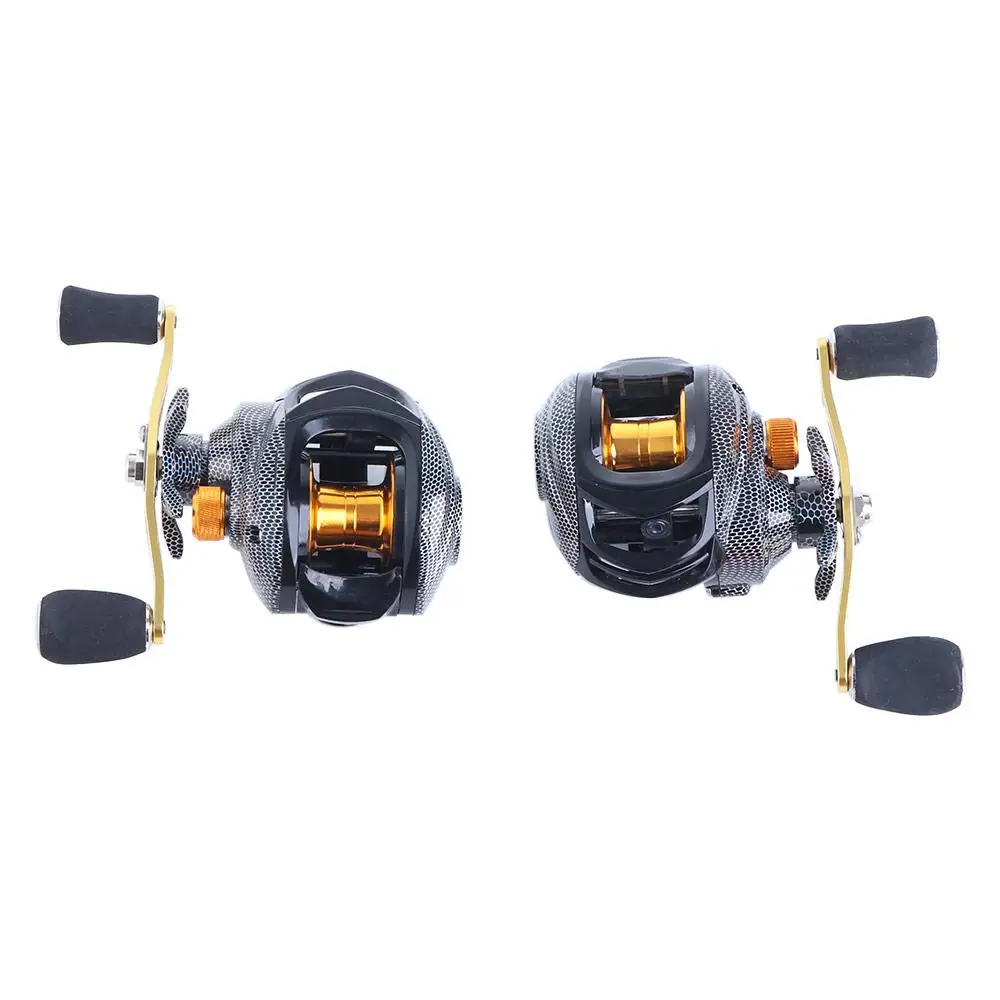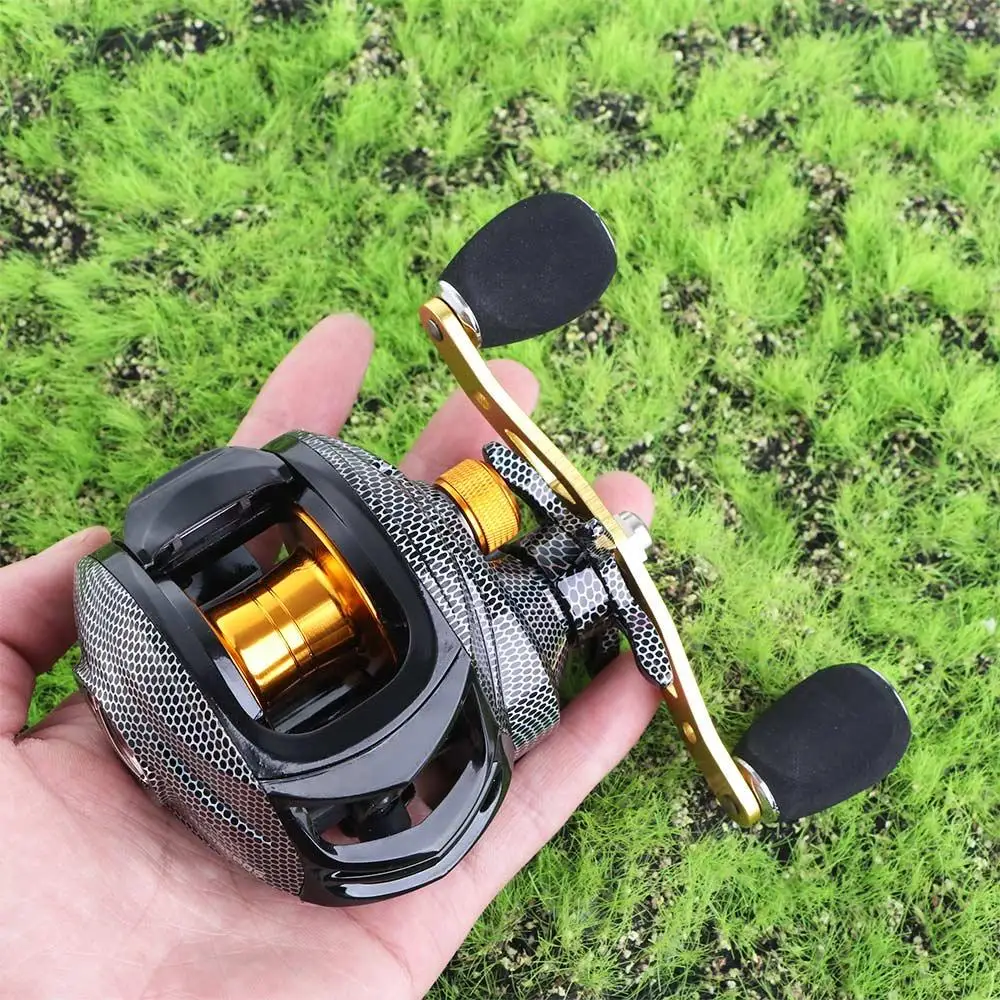 Material: metal + plástico Categoría del producto: 18 + 1BB Dax Drag:10KG Relación de engranajes: 7,2: 1 Peso del barco de pesca: 184g Modelo: DW132R mano derecha; DW132L mano izquierda El paquete incluye: 1 x Carrete de pesca. Características de la rueda de pesca: 1. Diseño de forma de flujo, ultraligero, Cuerpo de fibra de vidrio de nylon - 60% de alta resistencia 2. Engranaje principal y piñón de latón 3. Estructura de parada inversa sin espacio (rodamiento único de acero inoxidable) Sistema de freno magnético 4,10, funcionando sin problemas 5. Fuerza de descarga máxima fuerza de bloqueo 10KG 6. Sistema de Extracción rápida de la cubierta lateral, el anillo de alambre cerámico no daña el cable