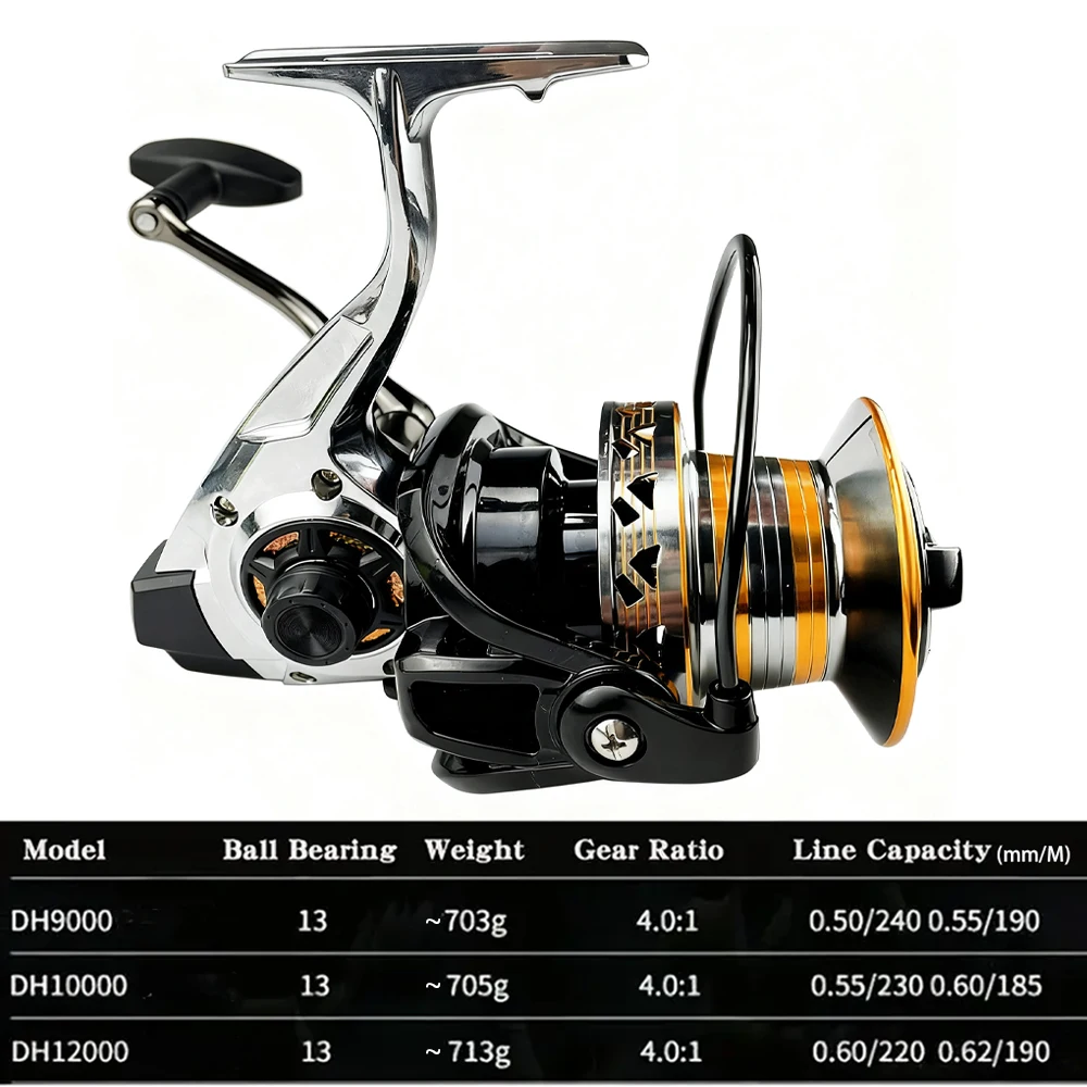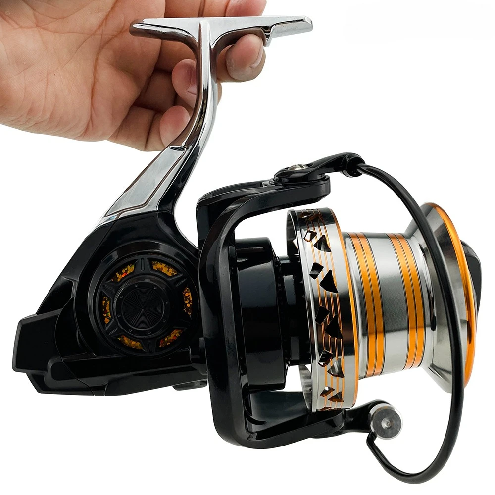 Carrete giratorio grande 9000 10000 12000 serie 30KG arrastre máximo carrete de Metal de fundición larga para Pesca de carpa Pesca de curricán de agua salada