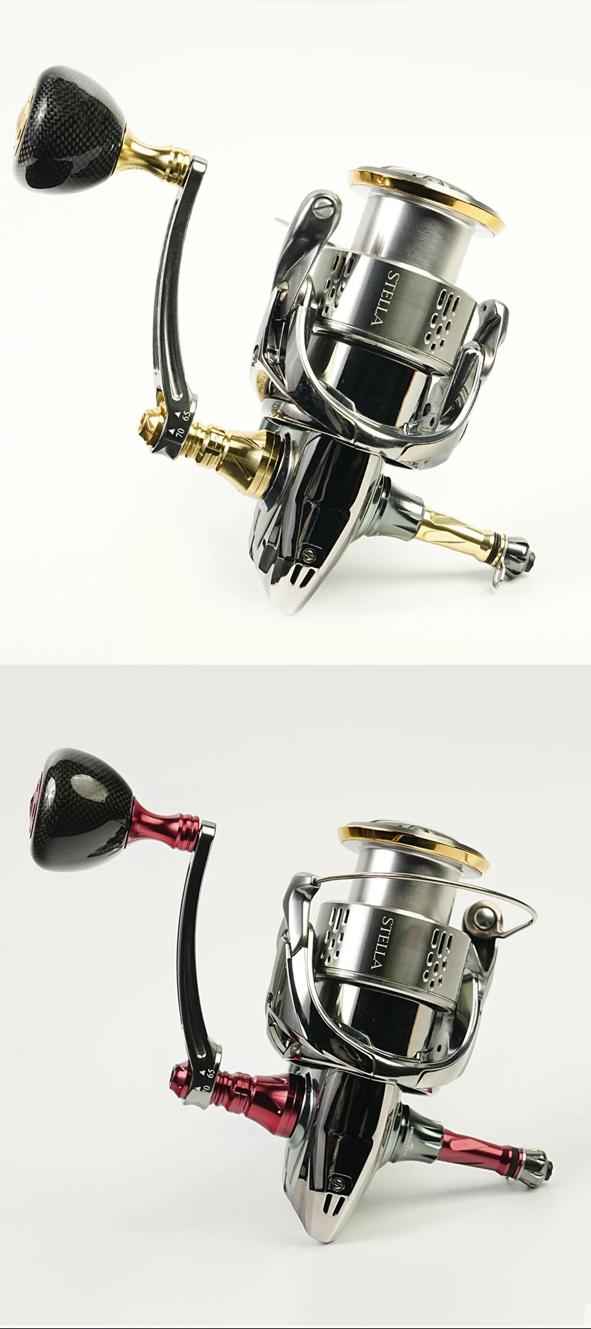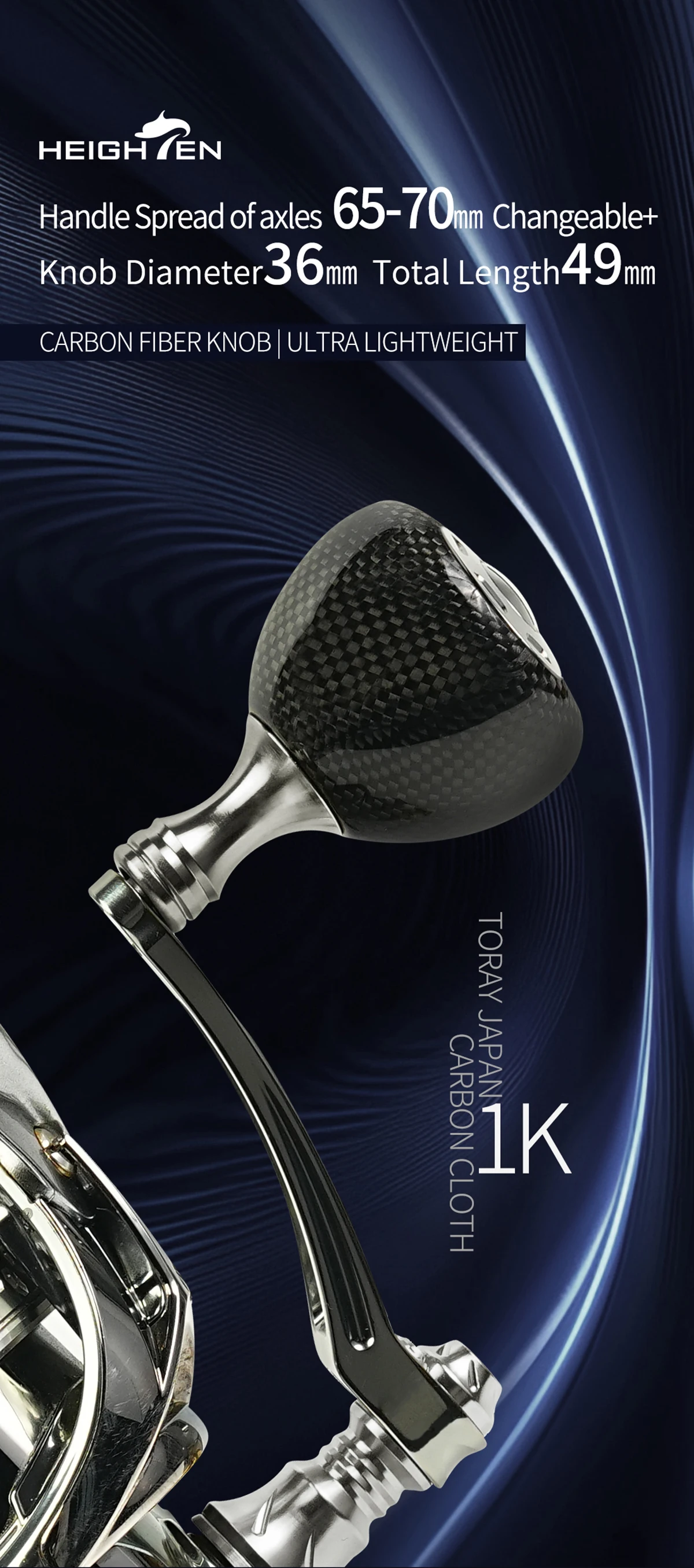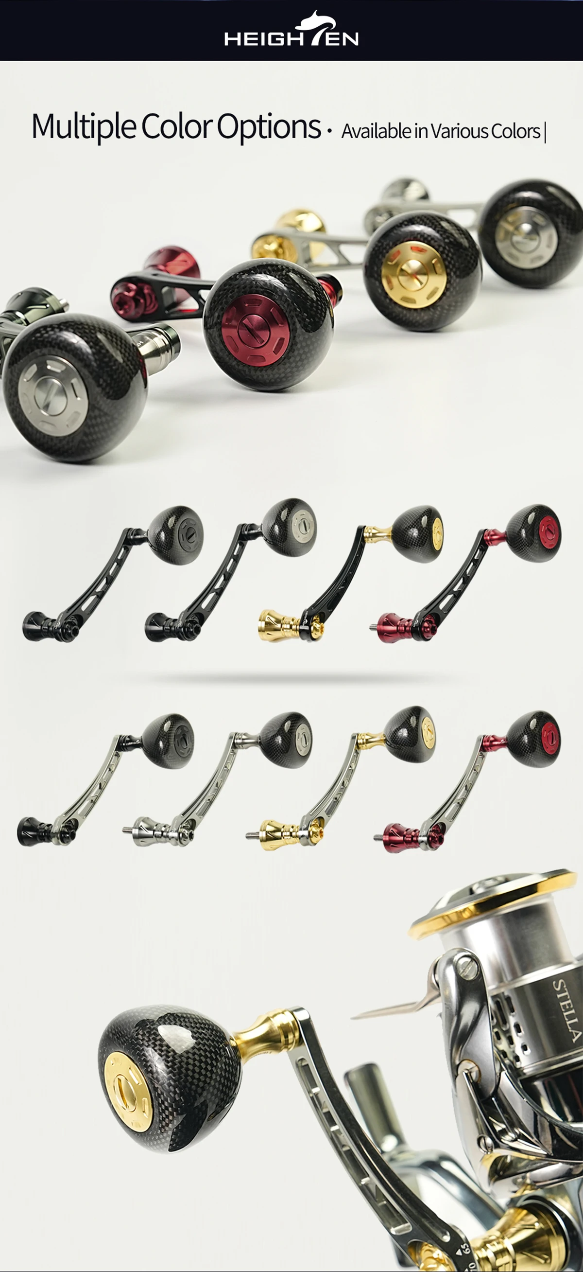 Carrete giratorio HIGHTEN, eje de mango único ajustable de 65-70mm con perilla de luz de fibra de carbono de 35mm de diámetro, compatible con Shimano Calcutta Dai
