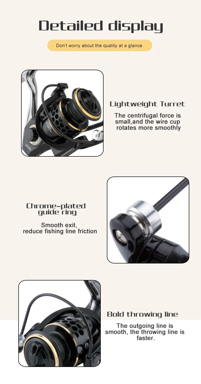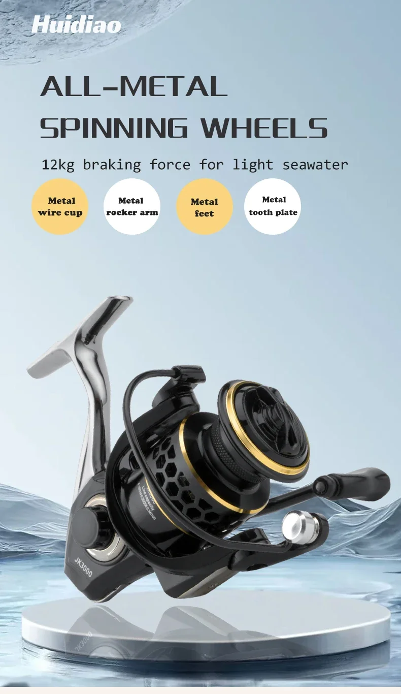 El sistema de arrastre superior del carrete de pesca HUIDIAO ofrece una potencia de frenado de hasta 12 kg de arrastre máximo.El centro de masa del carrete está perfectamente colocado, lo que ayuda a mejorar el equilibrio y el peso en la mano y proporciona así una gran fuerza motriz de estos carretes giratorios.