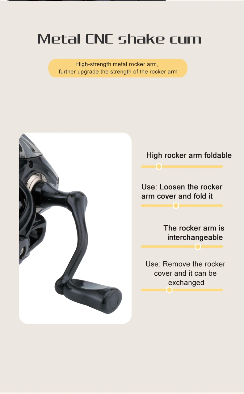 El carrete cuenta con un brazo de roca intercambiable izquierdo y derecho, que ofrece flexibilidad y comodidad para que los pescadores diestros y zurdos operen cómodamente.