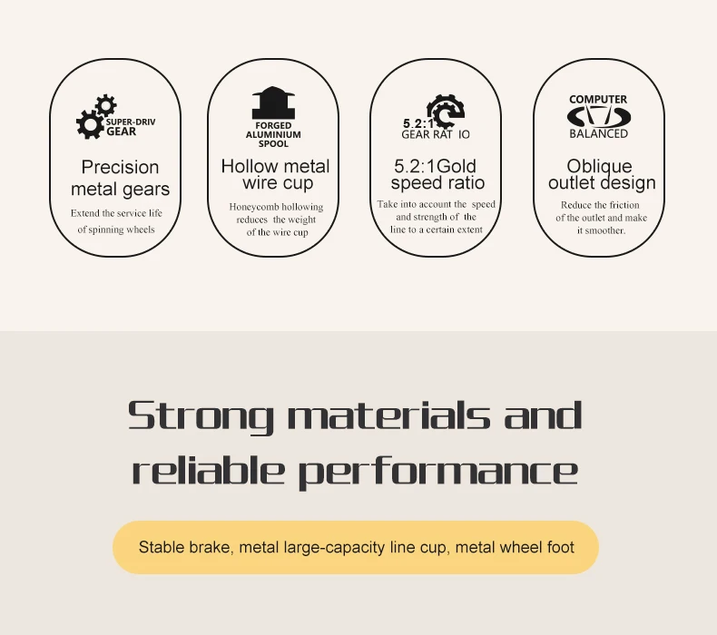 El carrete de metal con labio inclinado reduce la fricción en un 20%. El diseño de chaflán de copa de línea combinado con un excelente sistema de gestión de línea de propulsión ofrece una suavidad y capacidades de fundición excepcionales al tiempo que mitiga los problemas de gestión de líneas cargadas.