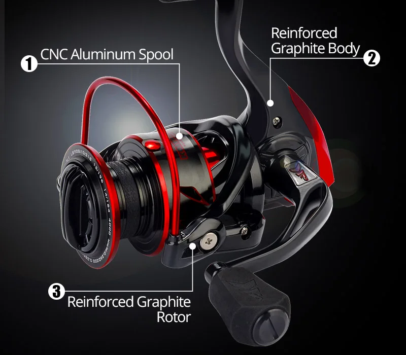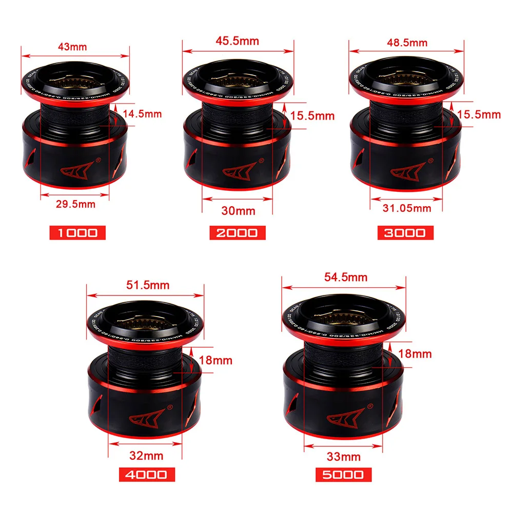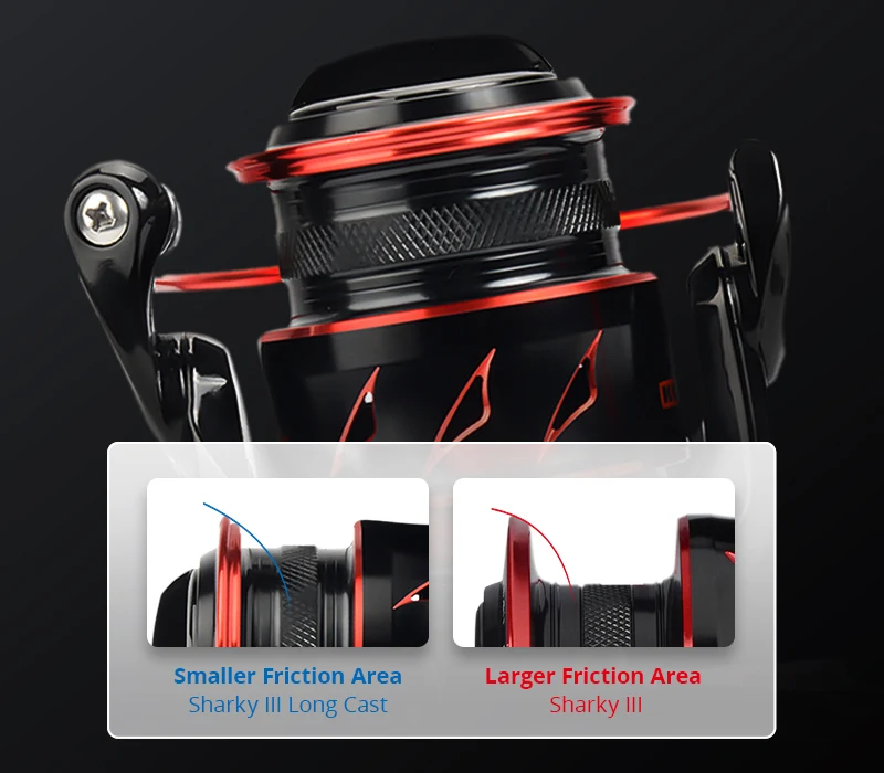 4.Carrete de aluminio exclusivo Shark Fin Braid Ready, ya no necesita usar hilo de respaldo al enrollar el hilo de pescar trenzado.