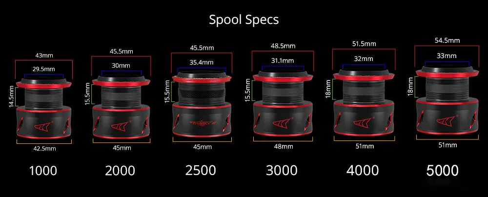 4.Carrete de aluminio exclusivo Shark Fin Braid Ready, ya no necesita usar hilo de respaldo al enrollar el hilo de pescar trenzado.
