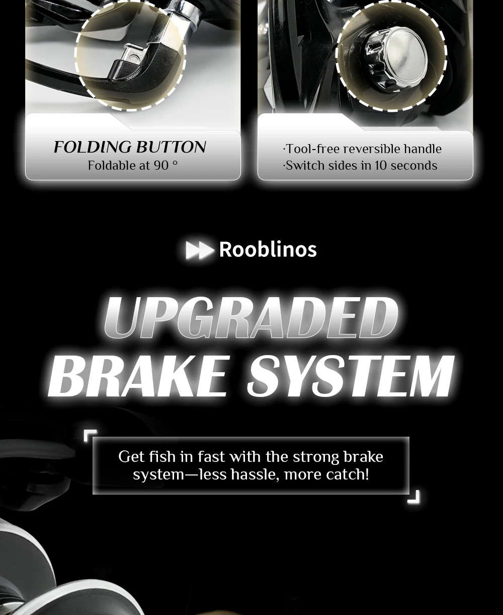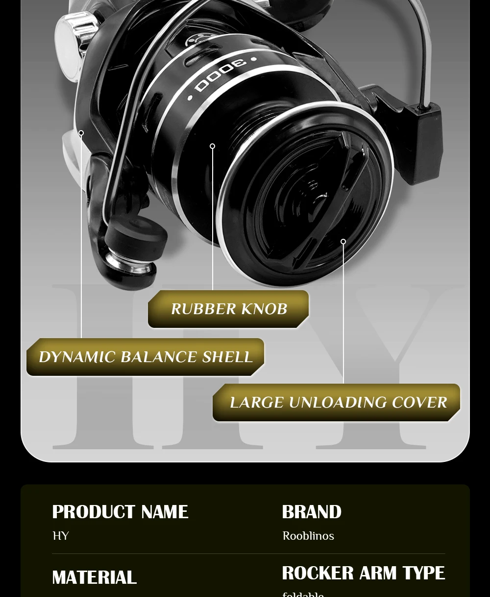 Carrete giratorio ligero ROOBLINOS HY 5,2: 1 Relación de engranajes Tamaño 2000-7000 235 g-338 g Liso integral