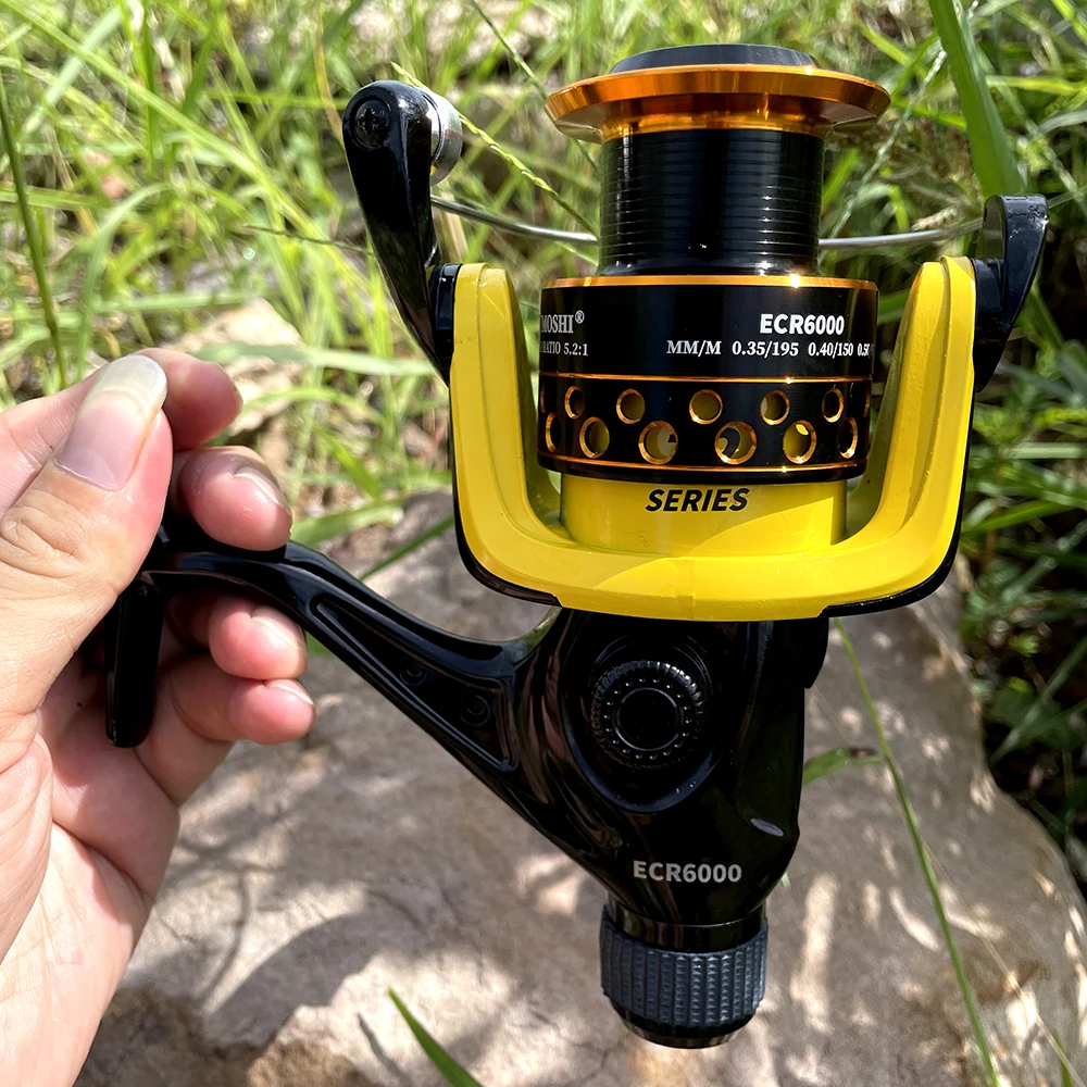 Bevel Line Cup Spinning Reel Serie 2000-7000 Accesorios Carrete de metal Rueda giratoria para mar Agua salada Carpa PescaINFORMACIÓN BÁSICAModelo: ECRCarrete: MetalCuerpo del carrete: plástico de ingenieríaBrazo de roca: plegable, intercambiable izquierdo y derechoRelación de engranajes: 5,2: 1Serie: 2000 3000 4000 5000 6000 70002000 3000 son adecuados para caña de roca, caña de balsa, caña de señuelo y caña de mar.4000 5000 6000 7000 son adecuados para caña de mar y varilla de fundición.Paquete incluido1 x carrete de pesca