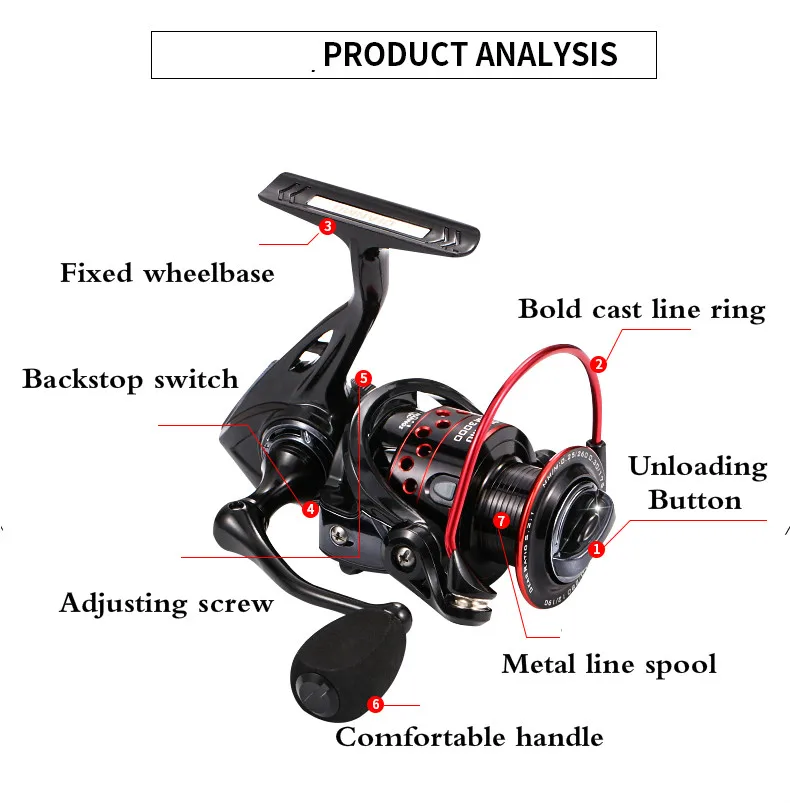 Cuerpo pequeño con arrastre máximo de 8-10kg, lo que significa que el carrete puede pescar peces de 17-22lb de peso.