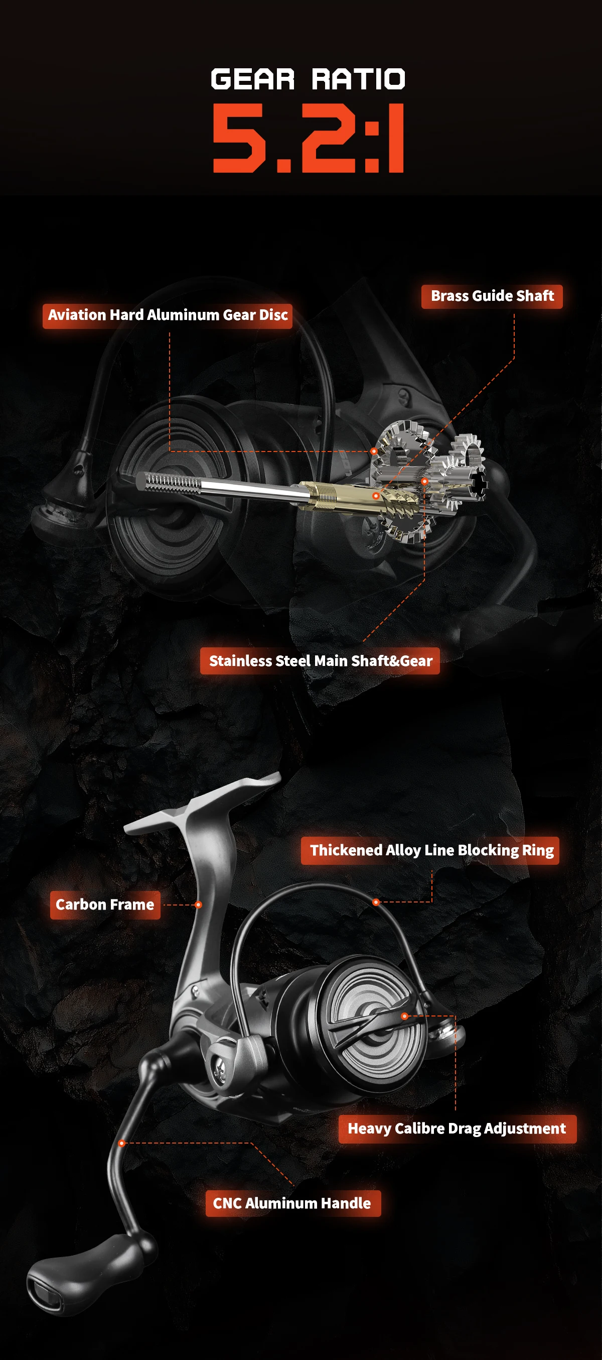 Equipado con rodamientos de alta calidad y un embrague unidireccional sensible para lanzar y recuperar sin problemas.