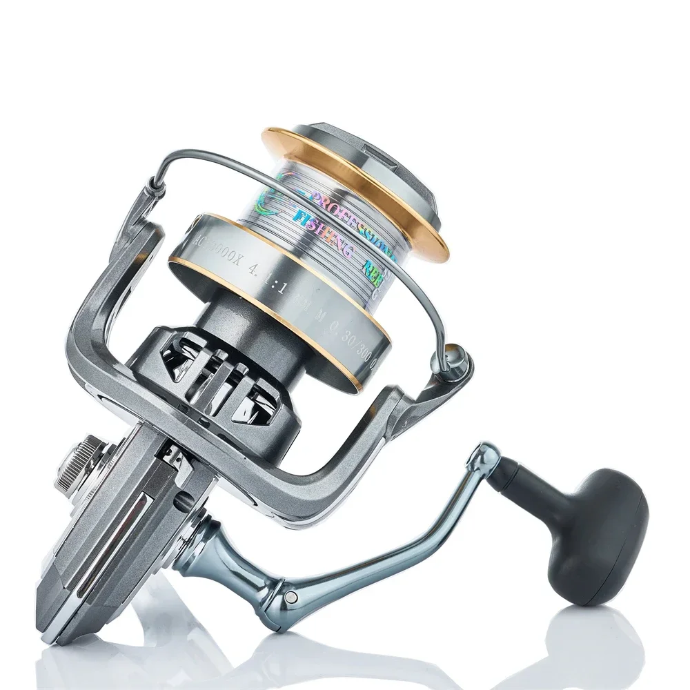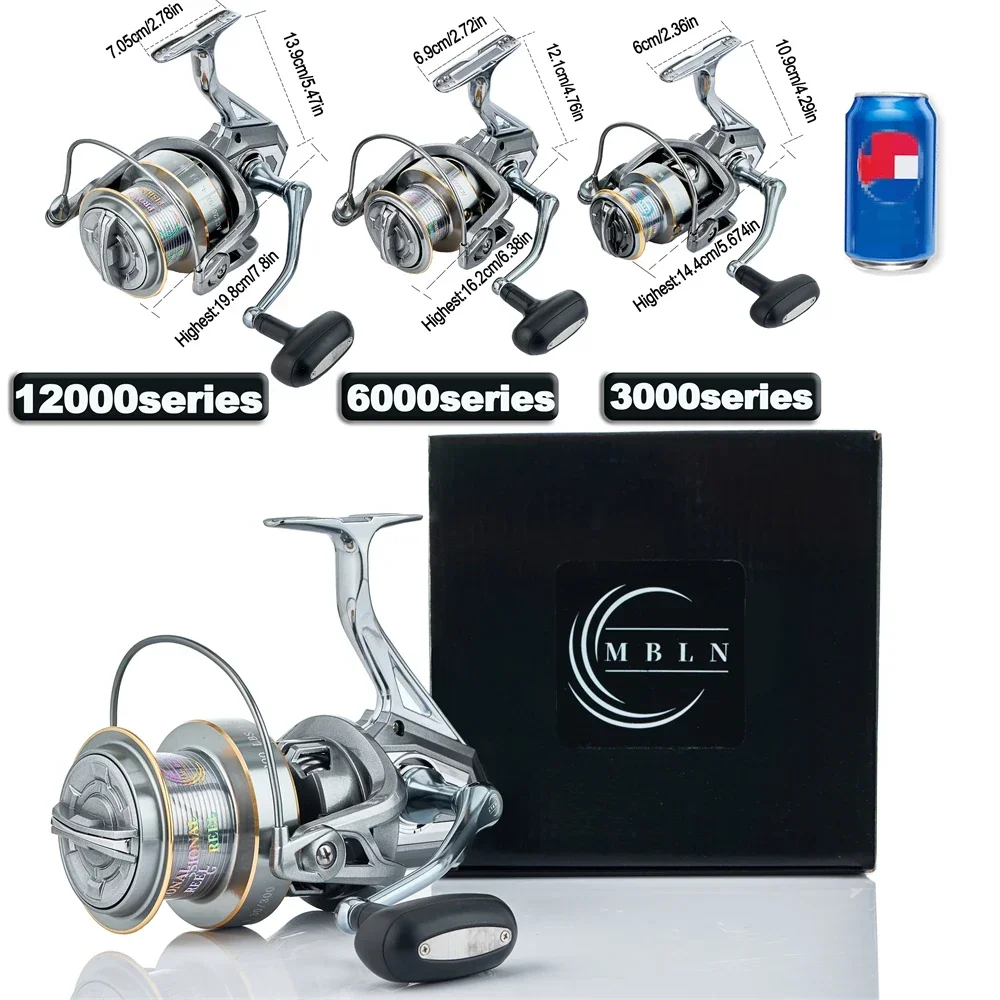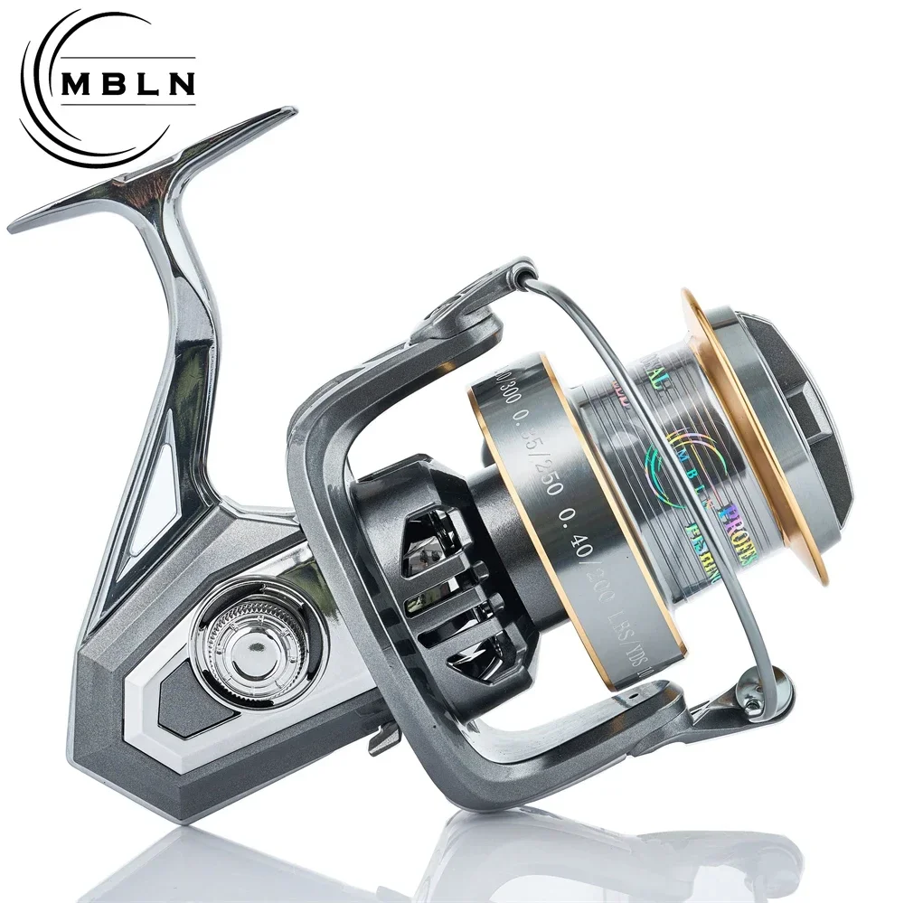 Carrete giratorio MBLN 90% totalmente metálico, arrastre de 25 kg/55 lb, pie de aleación, mango y engranaje, rendimiento confiable y duradero
