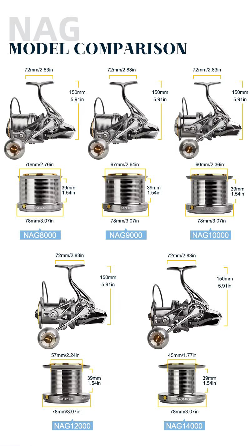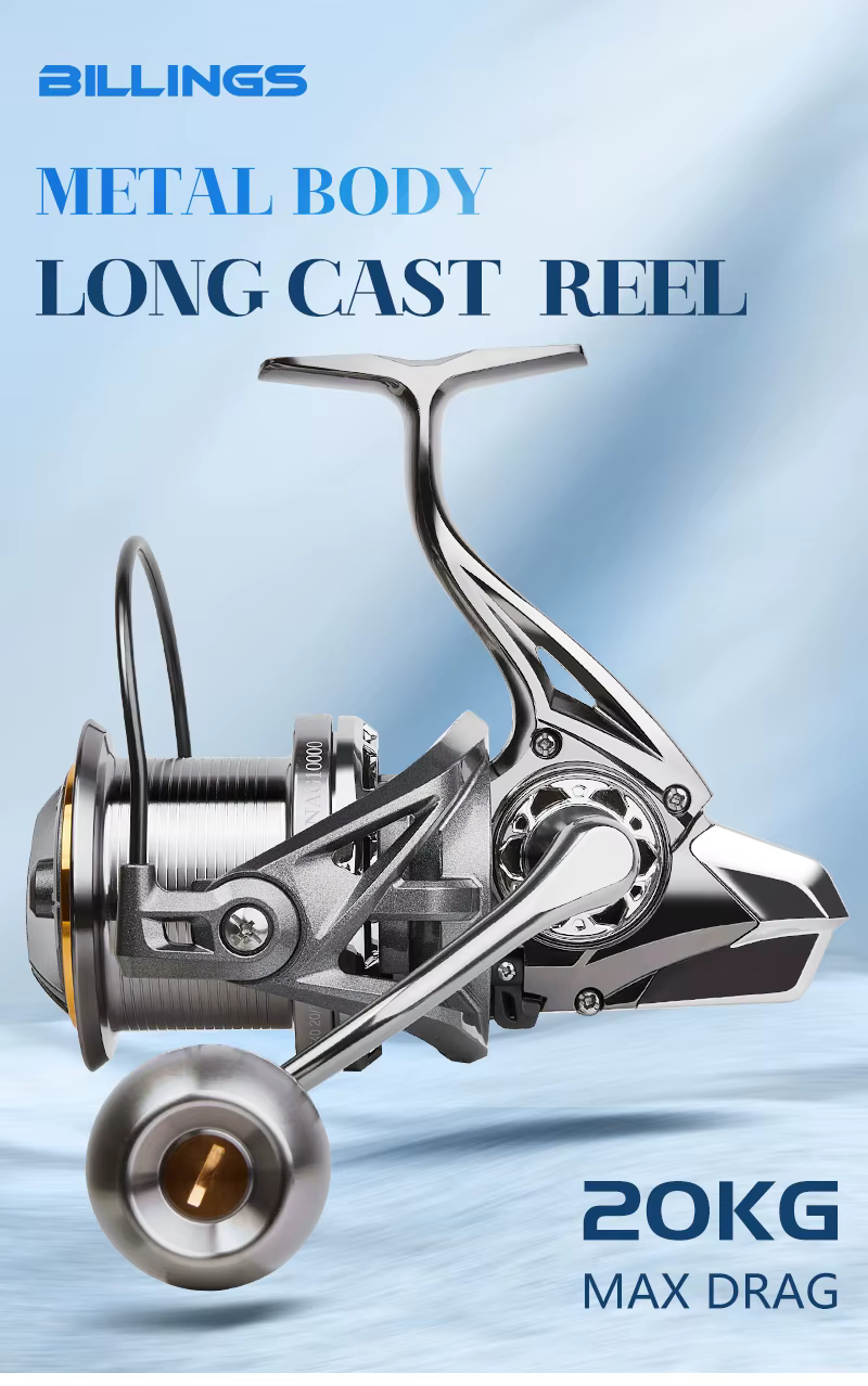 Carrete giratorio de Metal BILLINGS 8000-14000, carrete de fundición larga de arrastre máximo de 20KG y potente carrete de pesca giratorio para Surf en agua salada