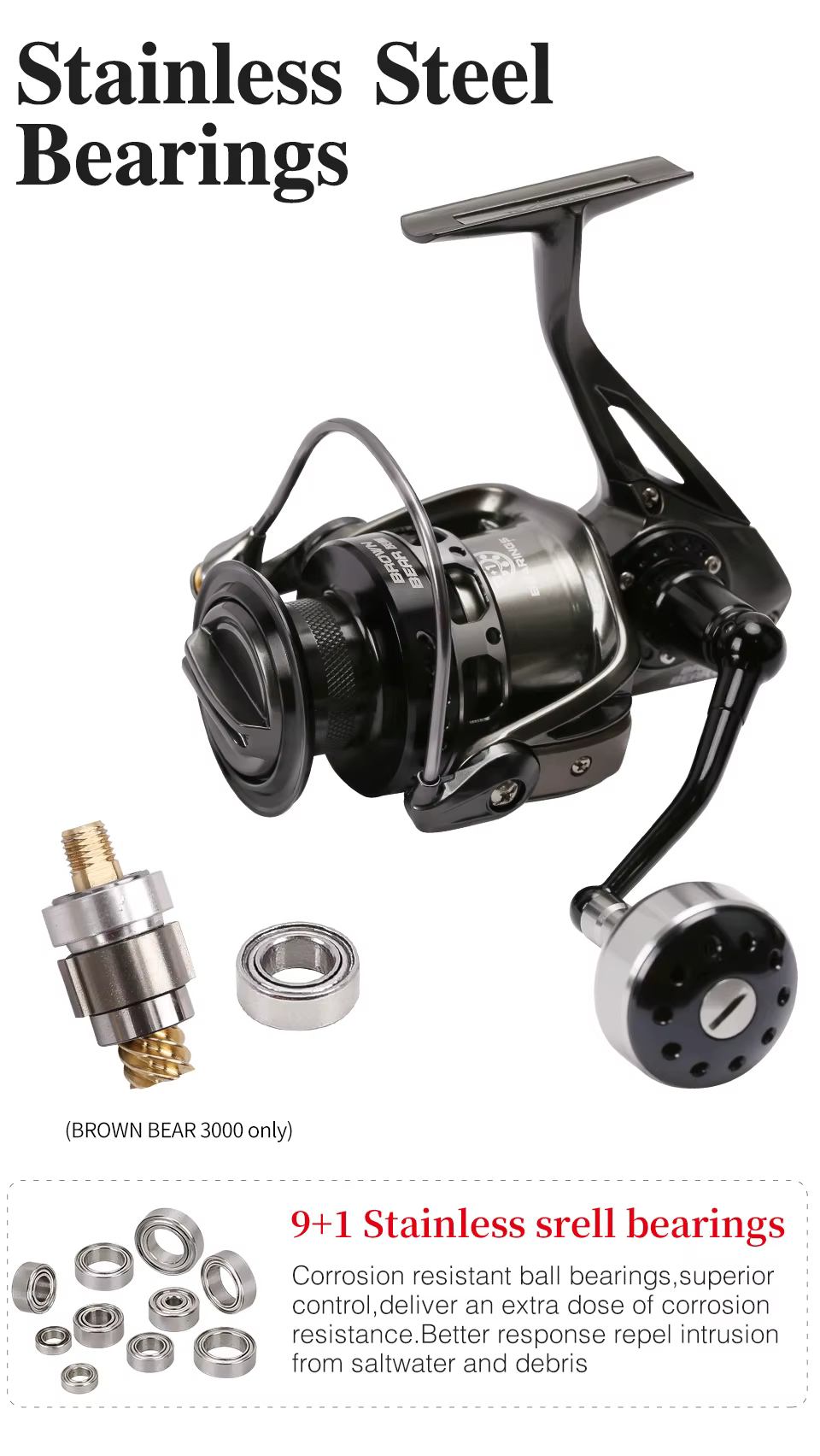 1.RAYA MARRÓN3000| Peso: 298 g| Relación de engranajes: 5,2:1| Rodamiento: 9+1BB| Arrastre máximo: 8KG| Capacidad de línea (mm-M): 0,235/240 0,236/200 0,285/180