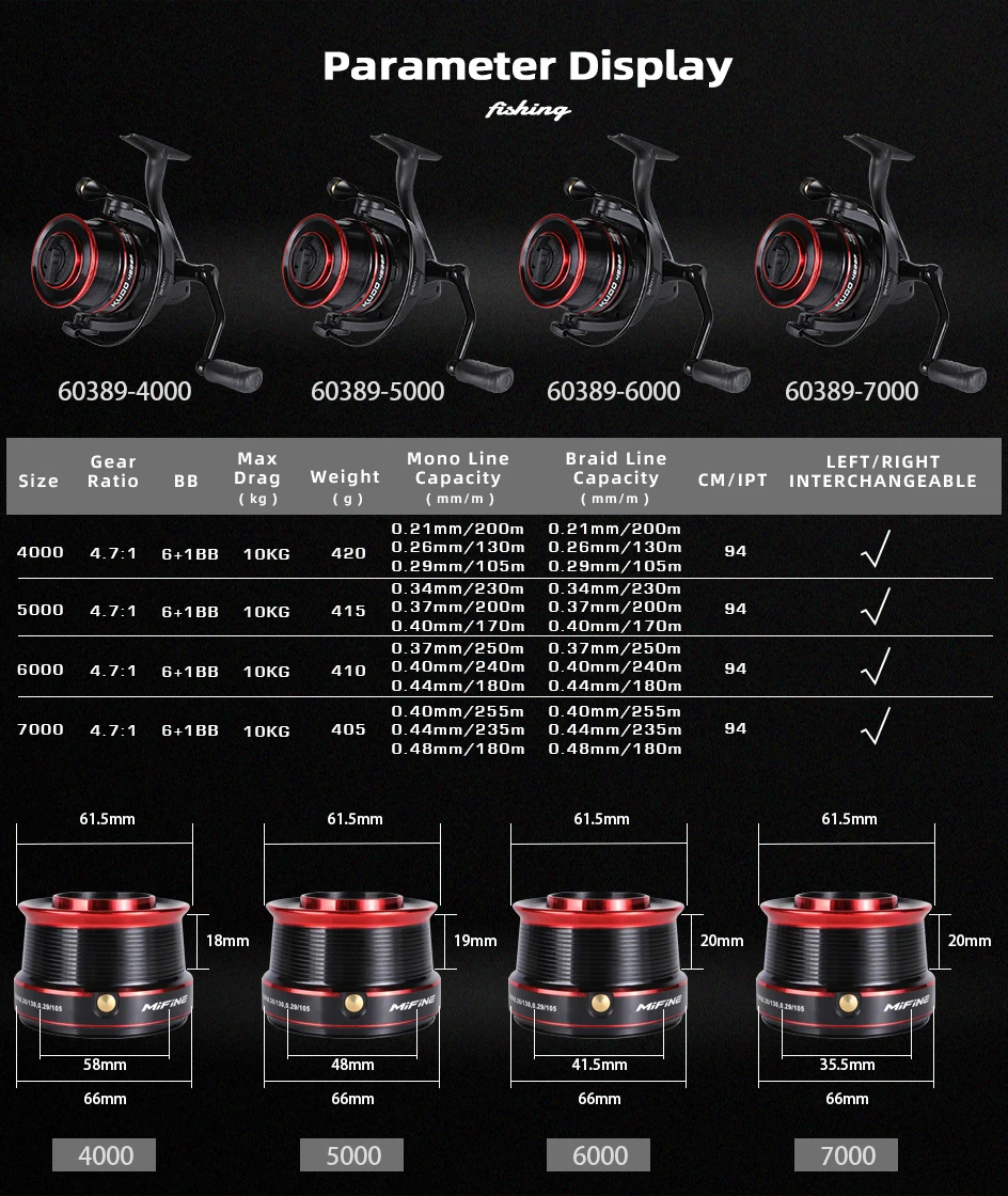 ● Funcionalidad: KUDO tiene cuatro carretes diferentes para sus cuatro tamaños, cuyo tamaño 4000 tiene un carrete poco profundo, el tamaño 5000 y 6000 tiene un carrete profundo moderado, el tamaño 7000 tiene un carrete más profundo, los ángulos pueden elegir diferentes tamaños para satisfacer sus necesidades de pesca.