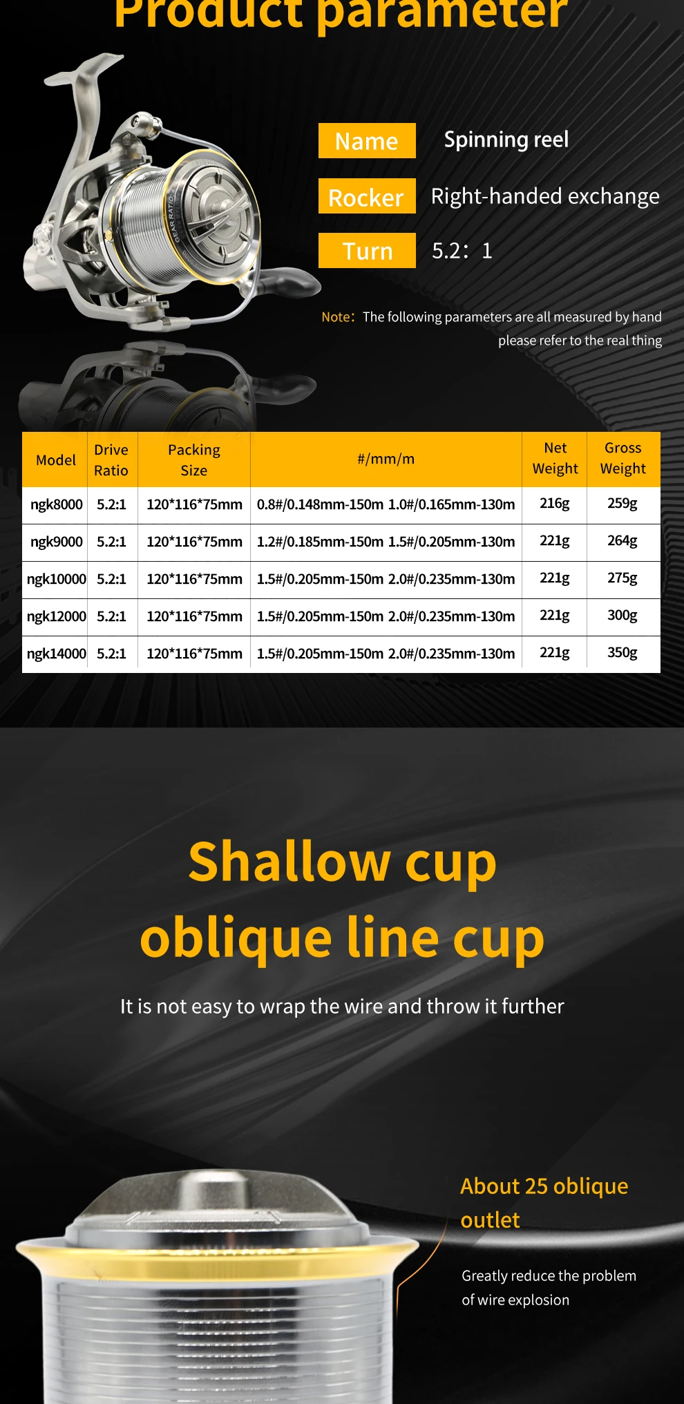 Carrete giratorio NGK de tiro largo, serie 8000/9000/10000/12000/14000, carretes de pesca de Surf 17 + 1B, carrete grande de agua salada de arrastre máximo de 55lb