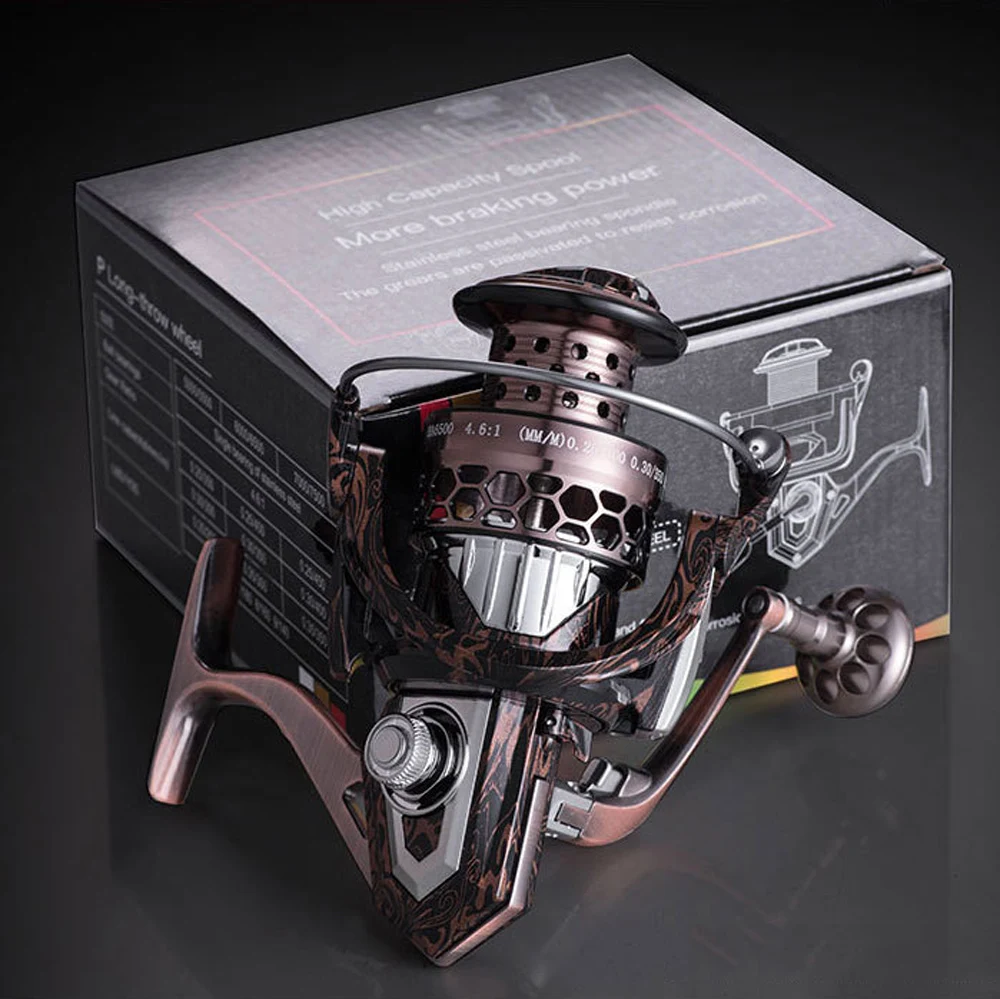 Carrete giratorio de pesca de aleación completa, 12 + 1BB, rueda giratoria de pesca de carpa, mango de Metal, bobina de carrete CNC, tallado hueco en agua salada