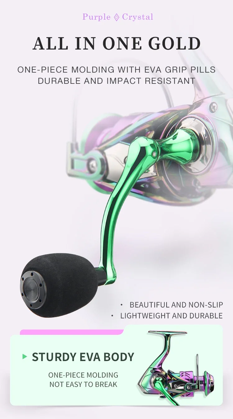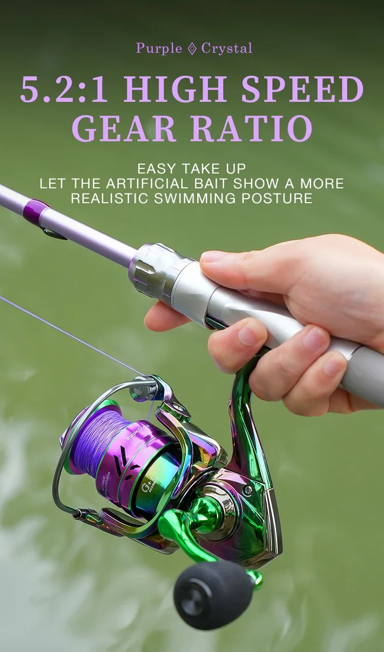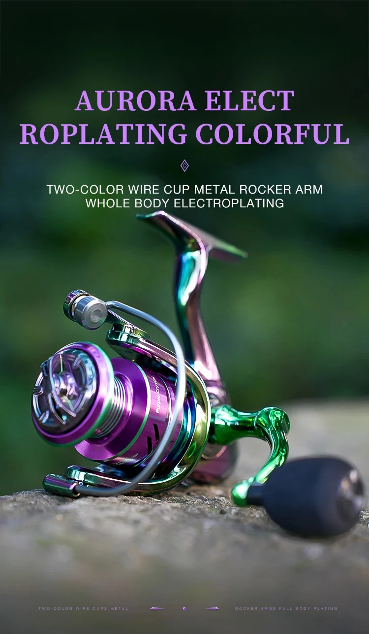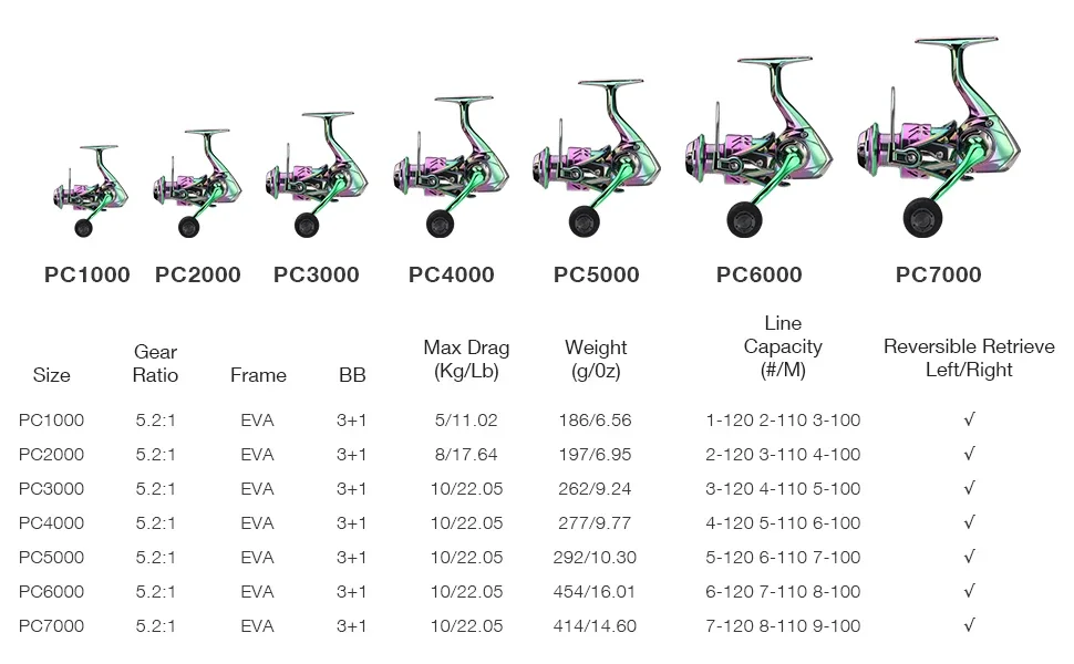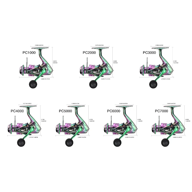 Carrete giratorio de pesca colorido PC1000-7000, relación de engranaje 5,2: 1 3 + 1BB con sistema de arrastre de 2205 libras, perfecto para agua salada y dulce