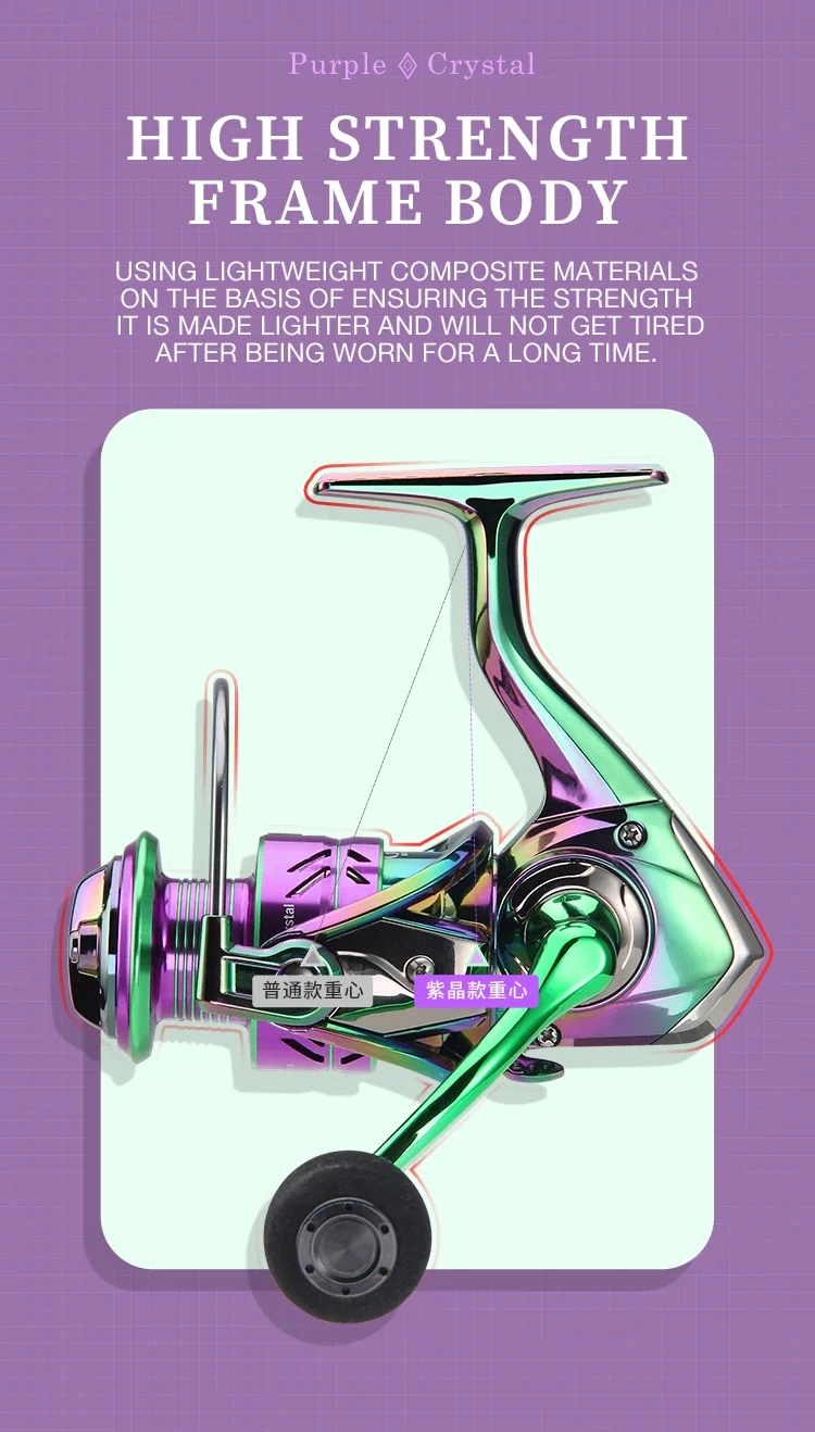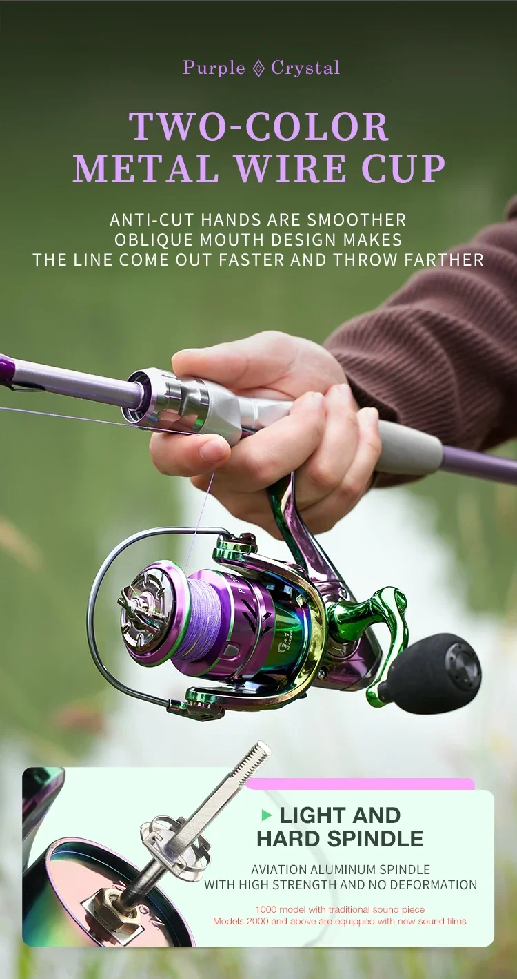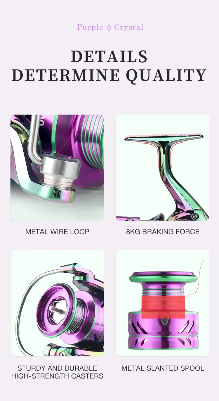 Carrete giratorio de pesca colorido PC1000-7000, relación de engranaje 5,2: 1 3 + 1BB con sistema de arrastre de 2205 libras, perfecto para agua salada y dulce