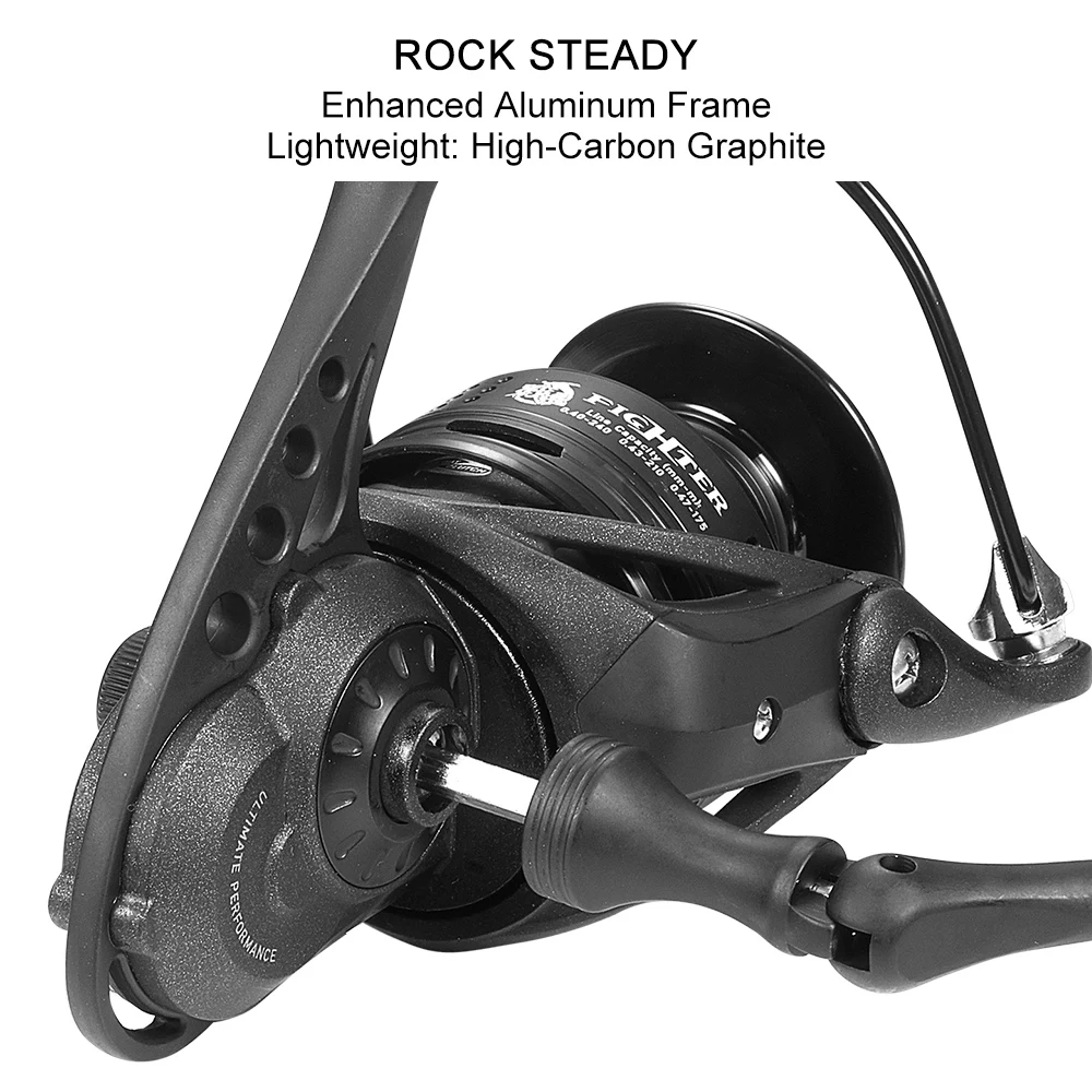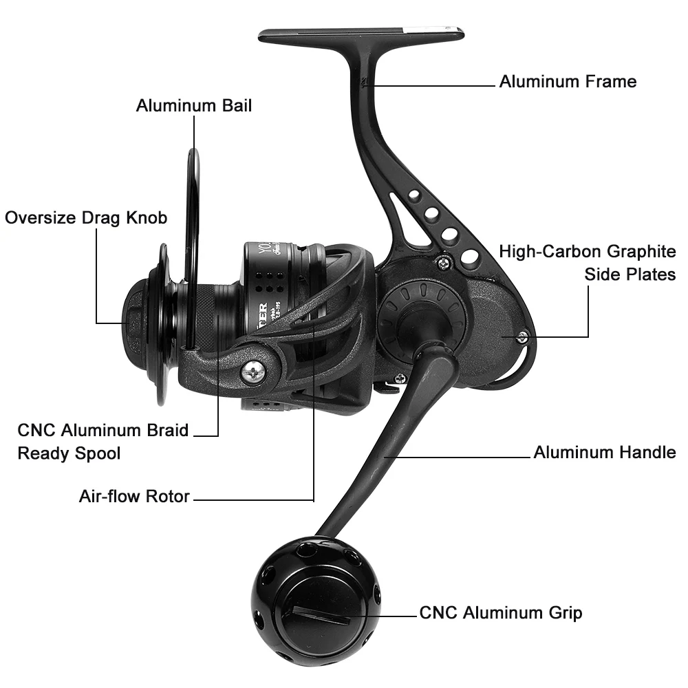 Recuperación segura.Las arandelas de arrastre de fieltro de aceite fabricadas en Japón están completamente lubricadas para un ajuste rápido y previo. El Cable de fianza de aluminio soporta todas las luchas pesadas del pez que deja cero giro y daño de la línea. OPERACIÓN CÓMODA.Carrete de aluminio CNC listo para trenzar, contiene más líneas mientras proporciona protección adicional para sus trenzas. Las manijas CNC de aluminio tipo L y el agarre de aire redondo están diseñados para un lanzamiento y recuperación incansables durante todo el día.