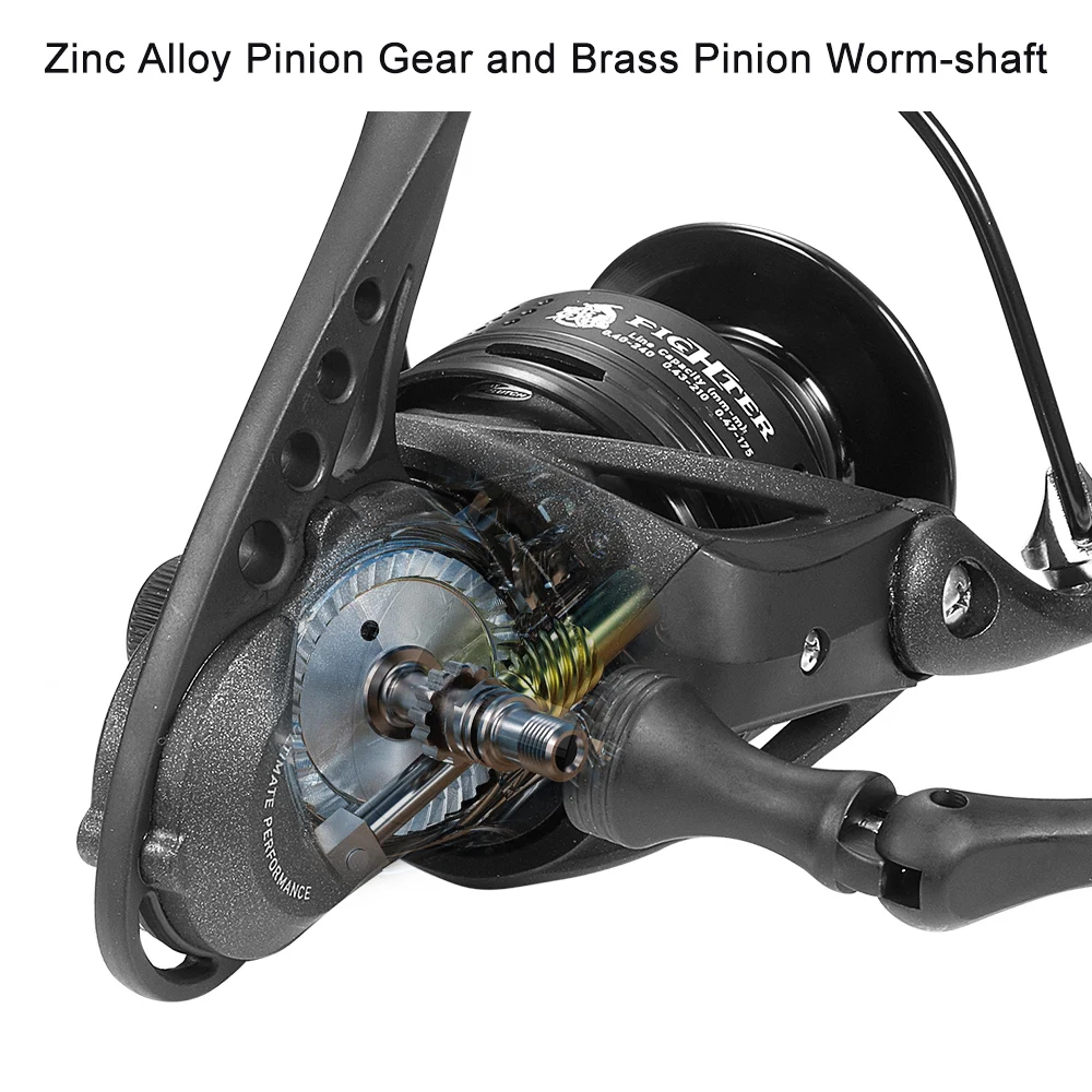 Construcción resistente.El marco de aluminio y las placas laterales de grafito de alto carbono ofrecen una resistencia ultraligera y súper alta del carrete de pesca. El eje de acero inoxidable, el piñón de latón y el piñón de zinc garantizan una función impecable de larga duración.