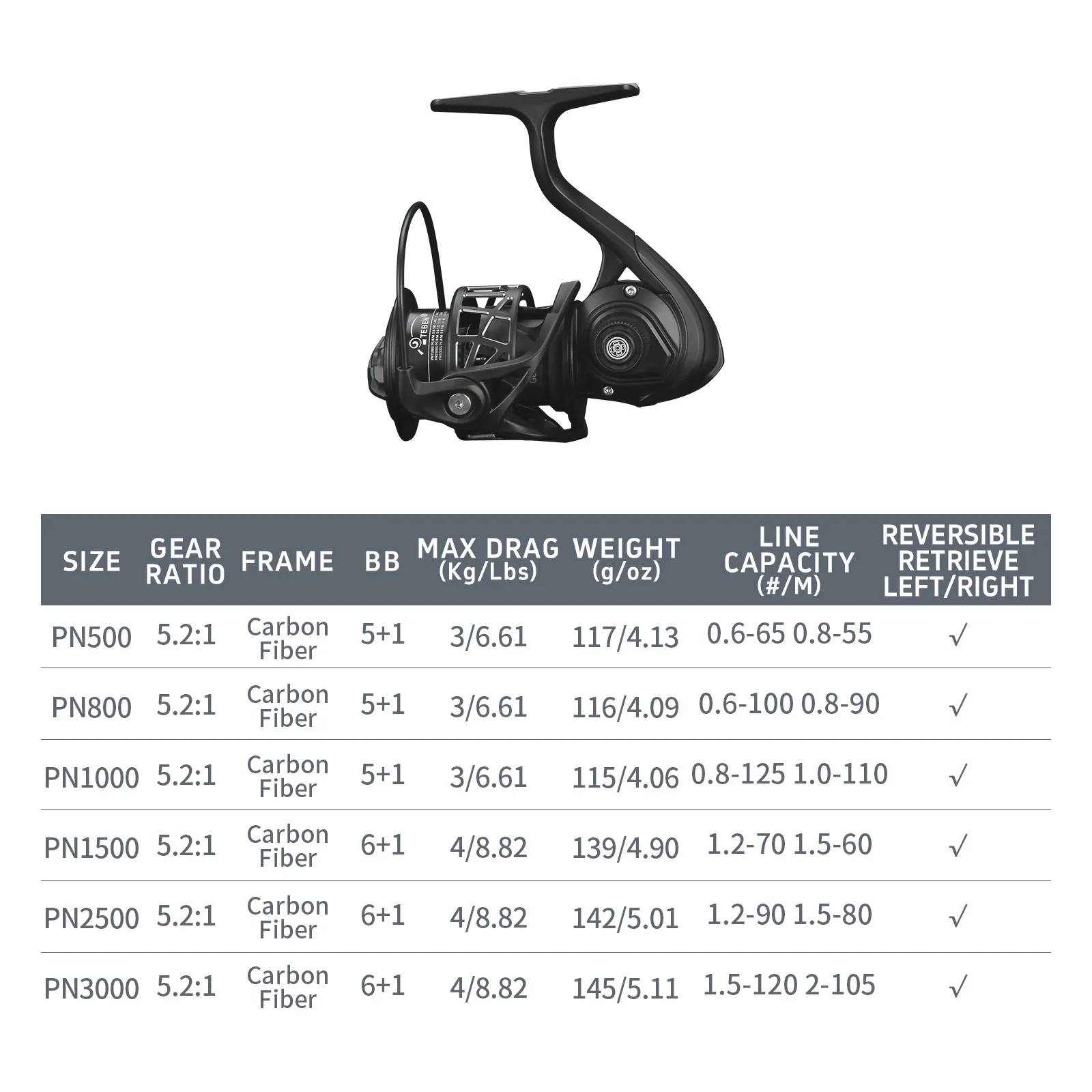 Carrete giratorio de pesca de fibra de carbono ultraligero negro, 5 + 1 rodamientos de bolas lisos, solo serie 1000 115 g, agitador atornillado