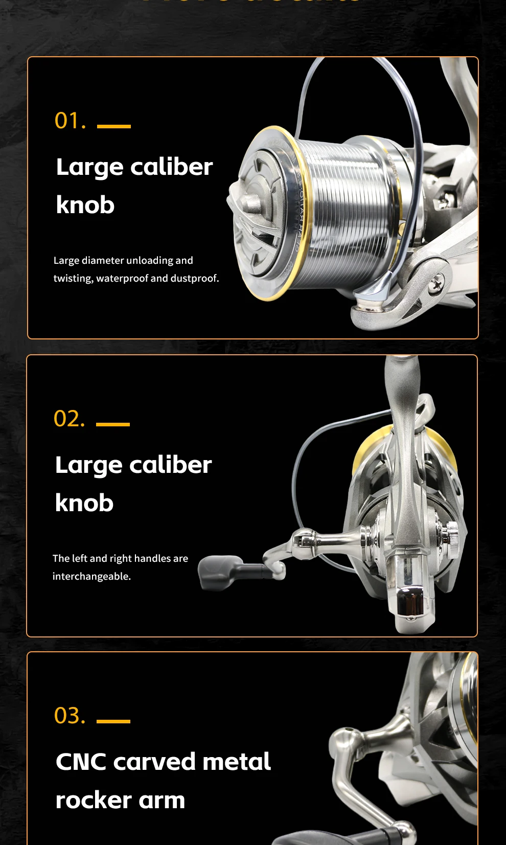 • Compatibilidad de cebo falso:Este carrete giratorio es compatible con cebos falsos, lo que lo convierte en una opción versátil tanto para la pesca de surf como de agua dulce.
