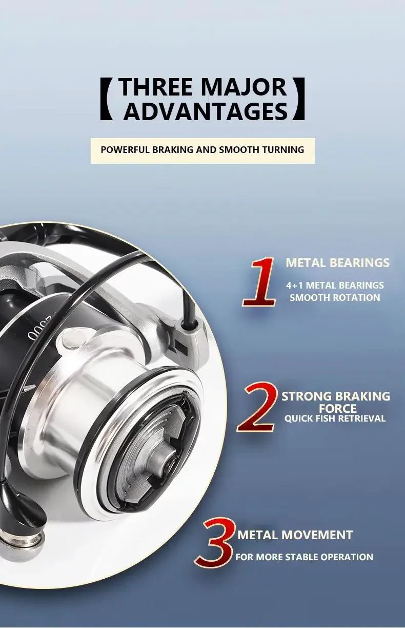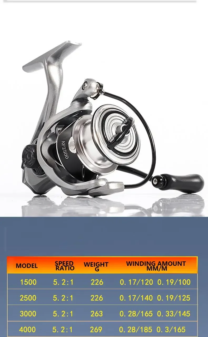 4.Ligero: Robusto pero liviano; El carrete de metal de gran capacidad permite una liberación suave del hilo con bajo arrastre y fácil de manejar.