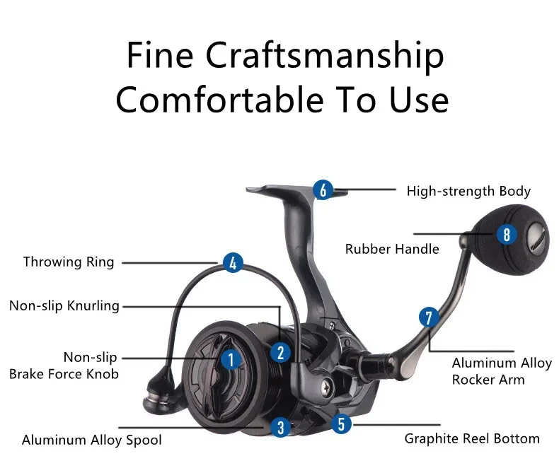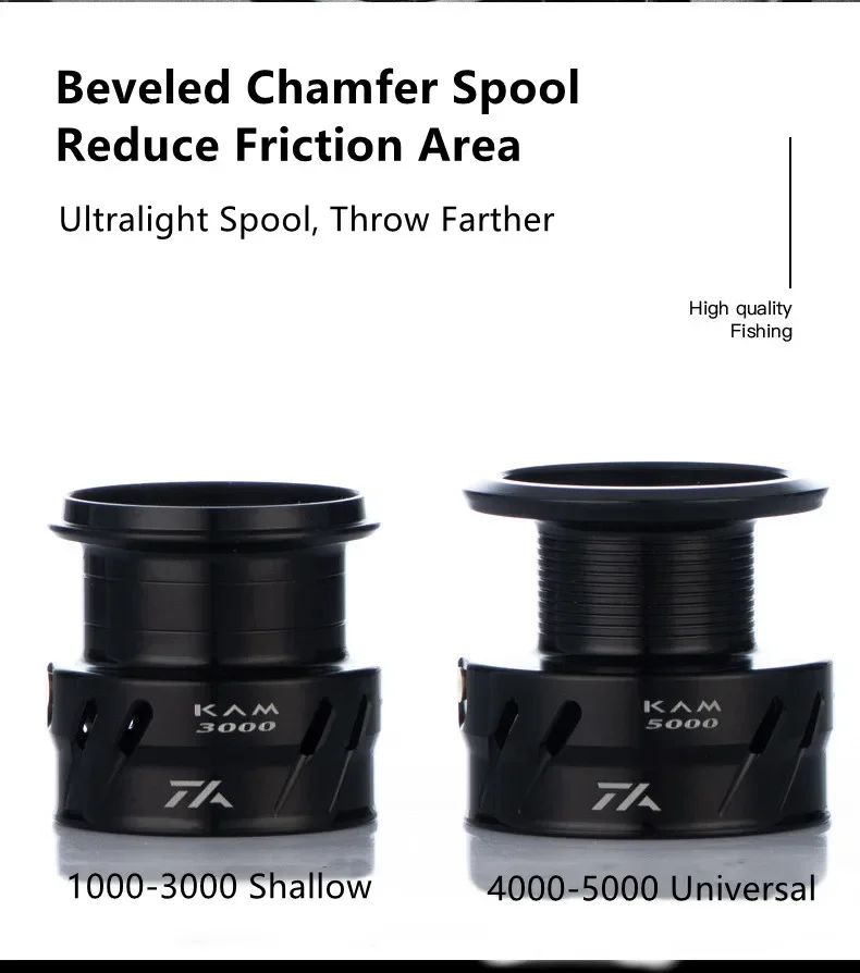 2.Carrete poco profundo biselado que libera la línea sin problemas y extiende la distancia de vuelo.