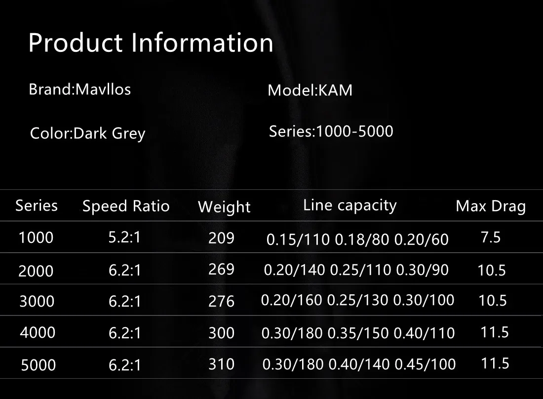 1000Serie| Relación de engranajes: 5,2:1| Peso: 209 g| Rodamientos: 8+1BB| Arrastre máximo: 7,5 KG| Capacidad de línea: 0,15/110 0,18/80 0,20/60